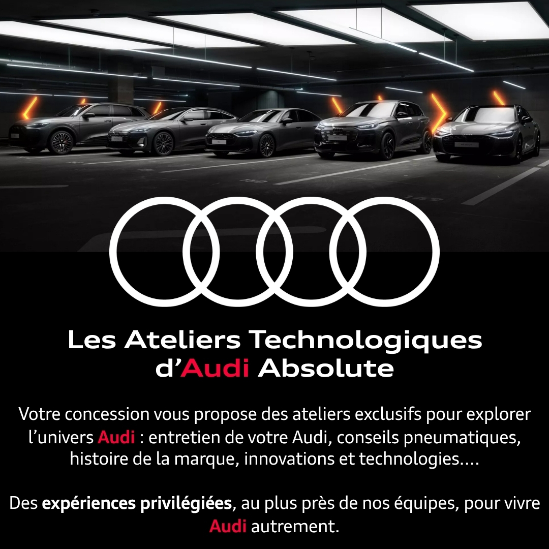 Bonne nouvelle chez Audi Les Ulis : nos ateliers technologiques exclusifs sont lancés, et l’aventure ne fait que commencer ! Animés par Axel, notre expert passionné, ces ateliers vous invitent à plonger au cœur de l’univers Audi dans une ambiance chaleureuse et conviviale.