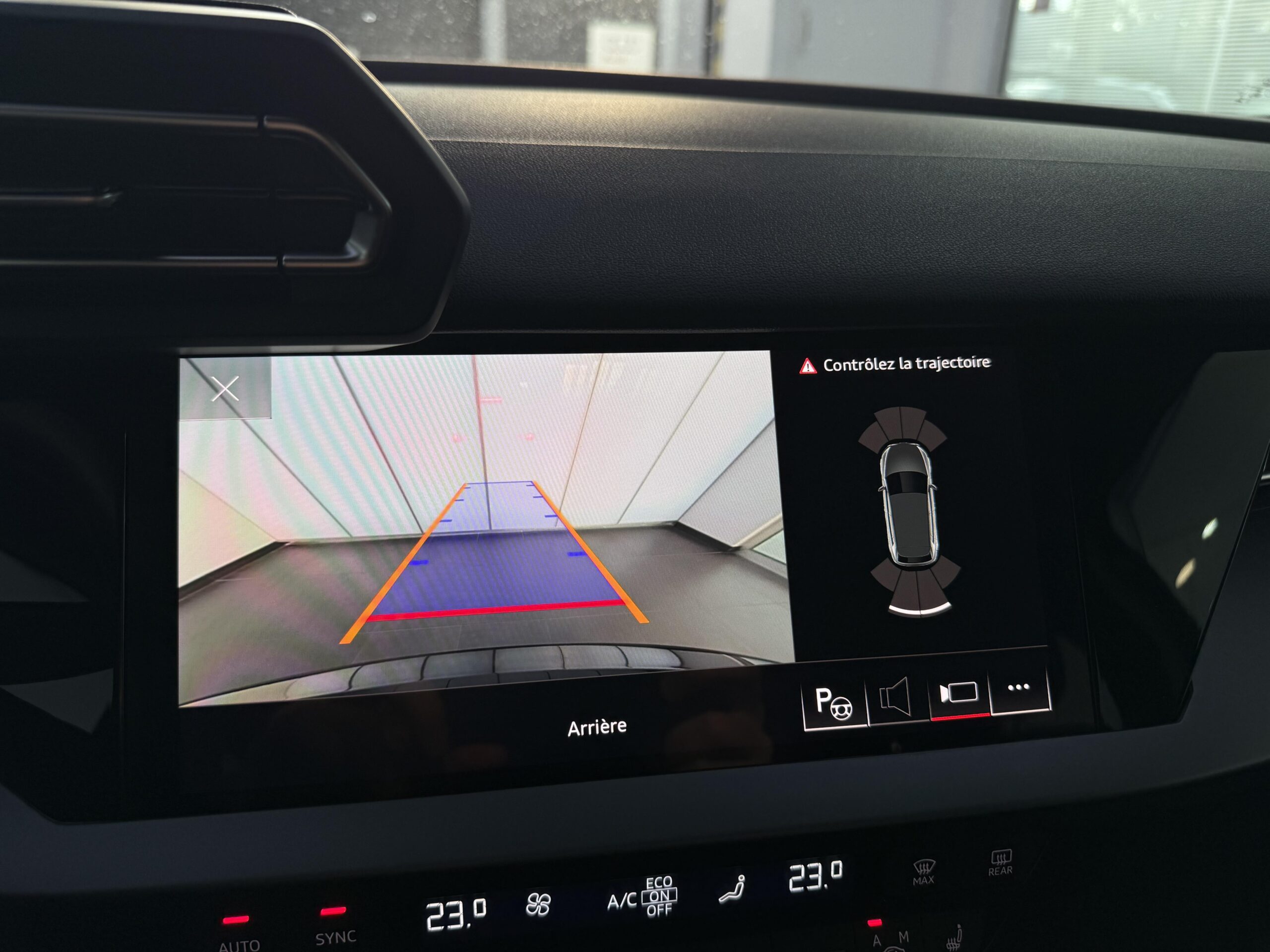 Audi park assist : cherche à l'aide de capteurs à ultrasons les places de stationnement (bataille et créneau) appropriées le long de la chaussée, calcule le créneau idéal et gère le braquage automatiquement