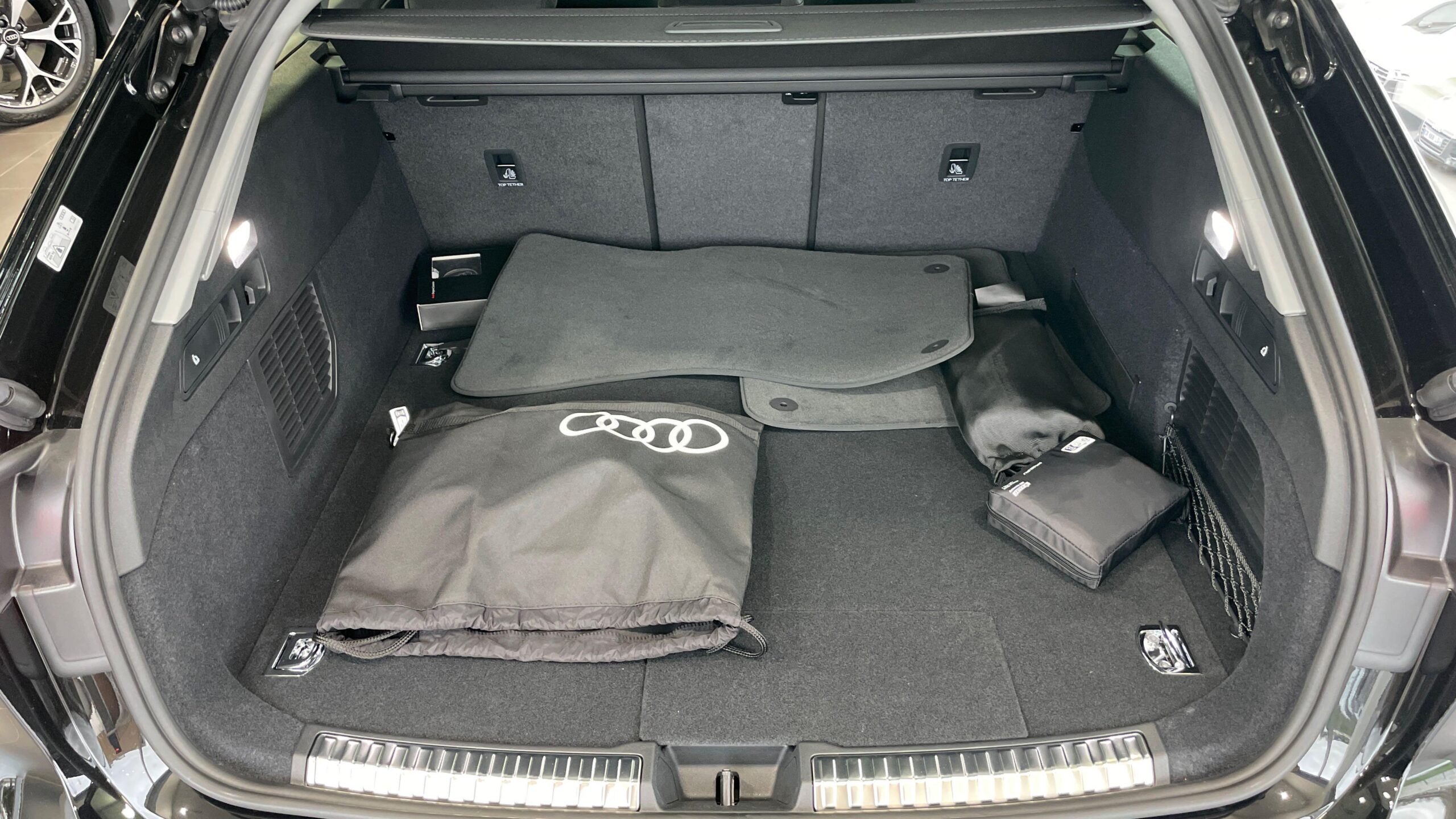 Pack Tech - Caméra de recul - Régulateur de vitesse adaptatif - Park assist plus - Système d'aide au stationnement plus - Projecteurs à LED plus - Assistant feux de route - Bloc de feux AR à LED pro - Climatisation automatique 3 zones - Rétroviseur intérieur à réglage jour/nuit automatique - Rétroviseurs ext. réglables - Projection de logo sur le sol depuis les rétroviseurs extérieurs - Audi sound system - Audi Application Store et smartphone interface