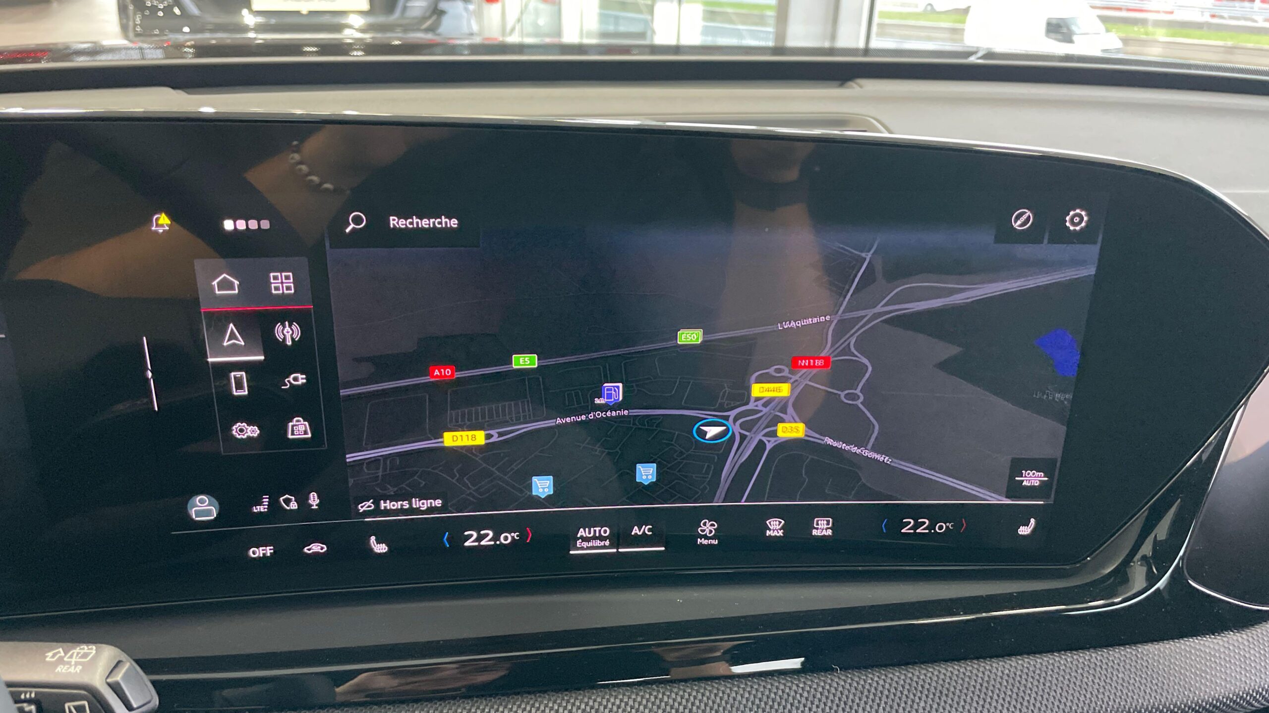Navigation MMI avec MMI touch Le système de navigation MMI plus avec MMI touch offre : - l'écran panoramique MMI avec technologie OLED, comprenant l'Audi virtual cockpit plus avec écran de 11,9 pouces ainsi que l'écran MMI touch de14,5" - système de navigation avec affichage des cartes et guidage routier sur l'écran couleur haute résolution de 14,5" - mise à jour des cartes en ligne - Affichage de cartes en 3D montrant de nombreux sites d'intérêt - informations routières en ligne - MMI search - MMI touch