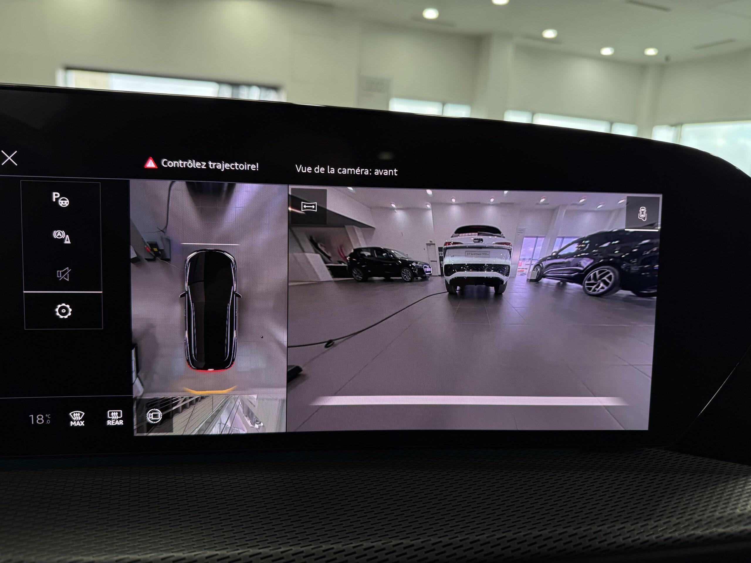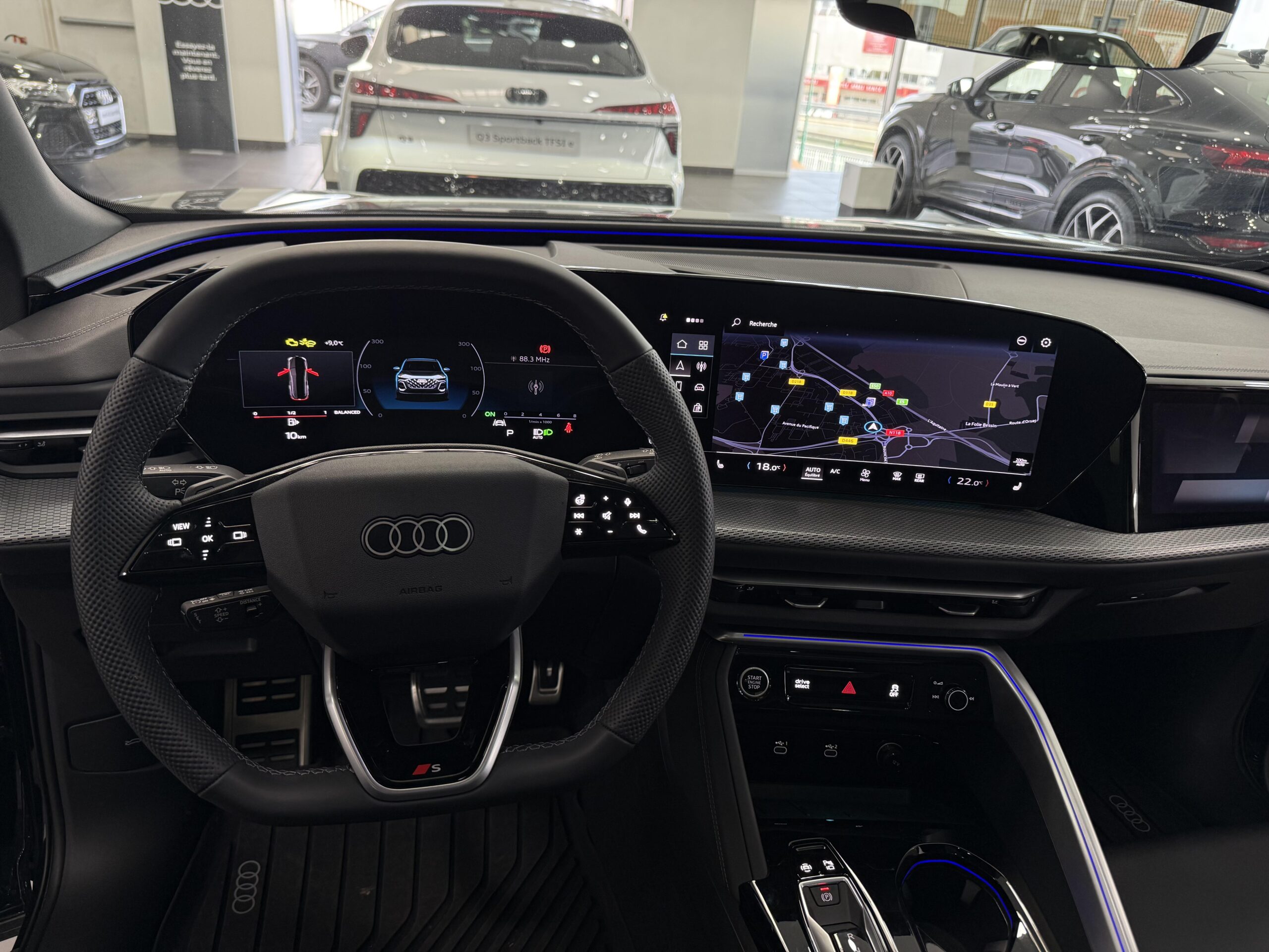Pack Tech -Clim. auto. 3 zones, -Rétroviseur int. à réglage jour/nuit auto., -Rétroviseurs ext. réglables, dégivrants et rabattables électriquement., -Projection de logo sur le sol depuis les rétroviseurs ext, -Lave-projecteurs, -Audi Application Store et smartphone interface, -Audi sound syst., -Projecteurs à LED plus, -Assistant feux de route, -Bloc de feux AR à LED pro, -Syst. d'aide au stationnement plus, -Park assist plus, -Caméra de recul, -Régulateur de vitesse adapt.