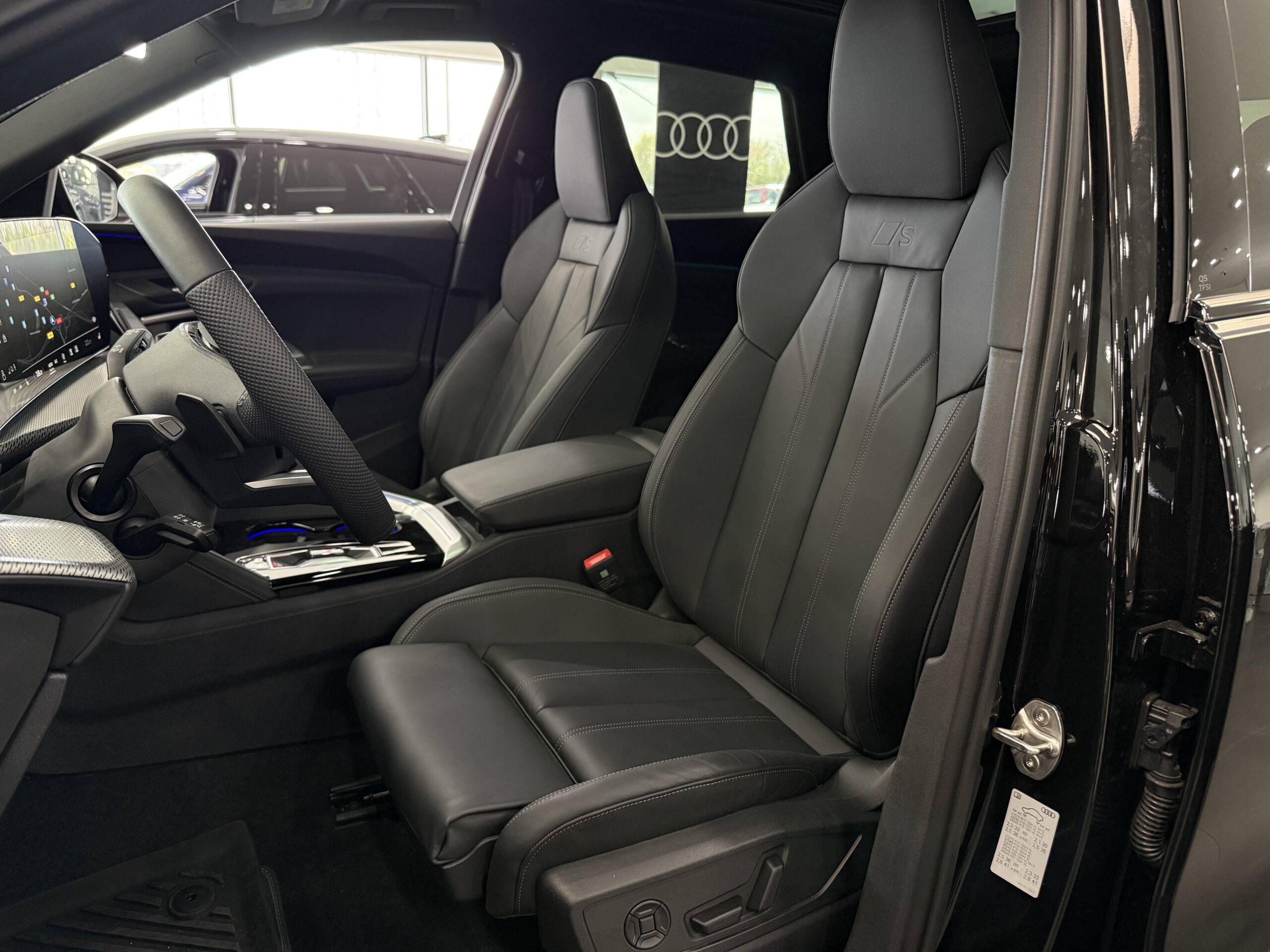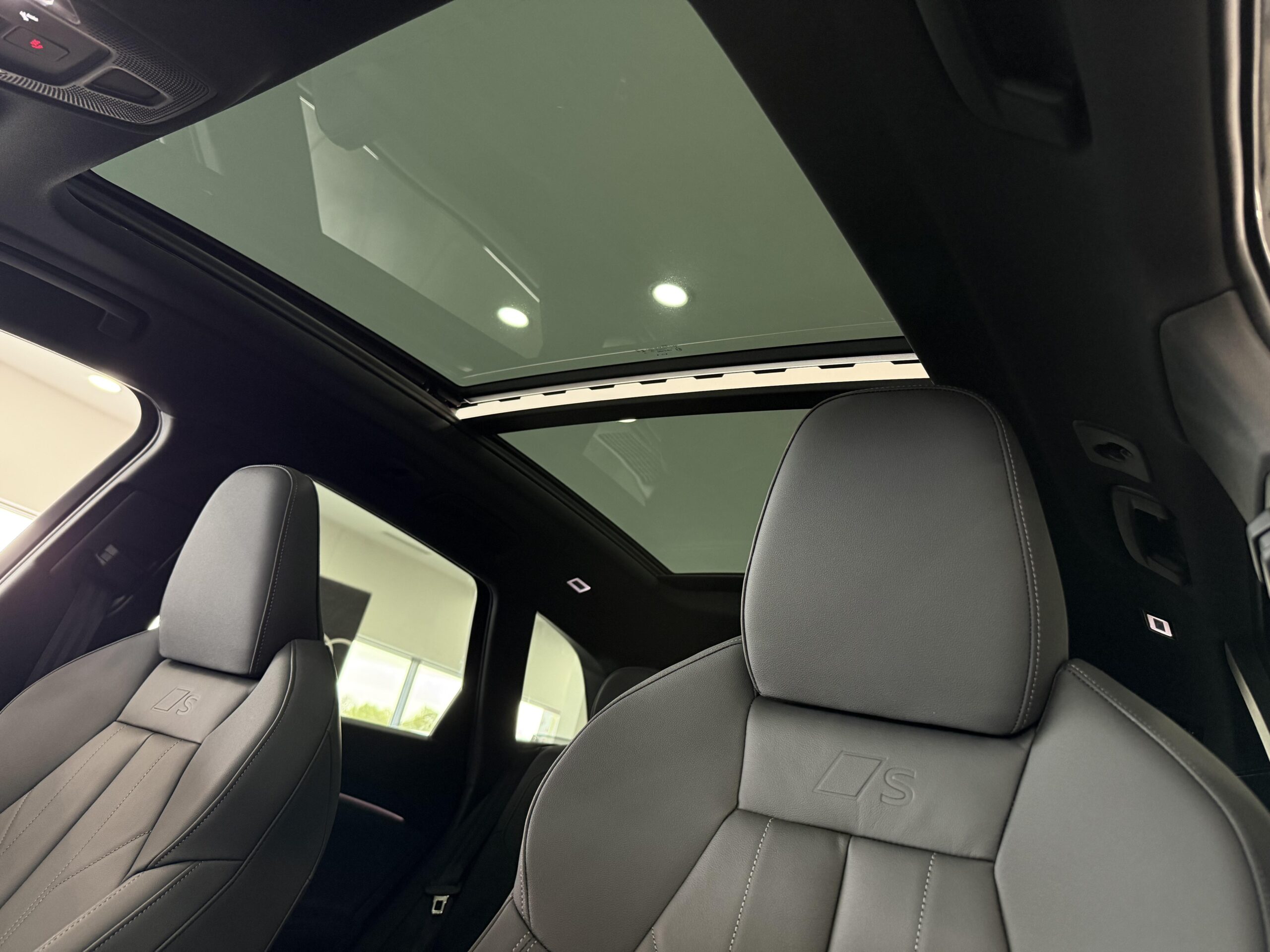 Pack intérieur S line cuir/matière synthétique avec Sièges Sport - Appuis lombaires, - Sièges AV chauffants, - Sièges AV à réglages électriques, - Éclairage d'ambiance Plus, - Inserts décoratifs en aluminium mat brossé avec gaufrage linéaire, - Sellerie cuir/matière synthétique, - Applications intérieures style aluminium.