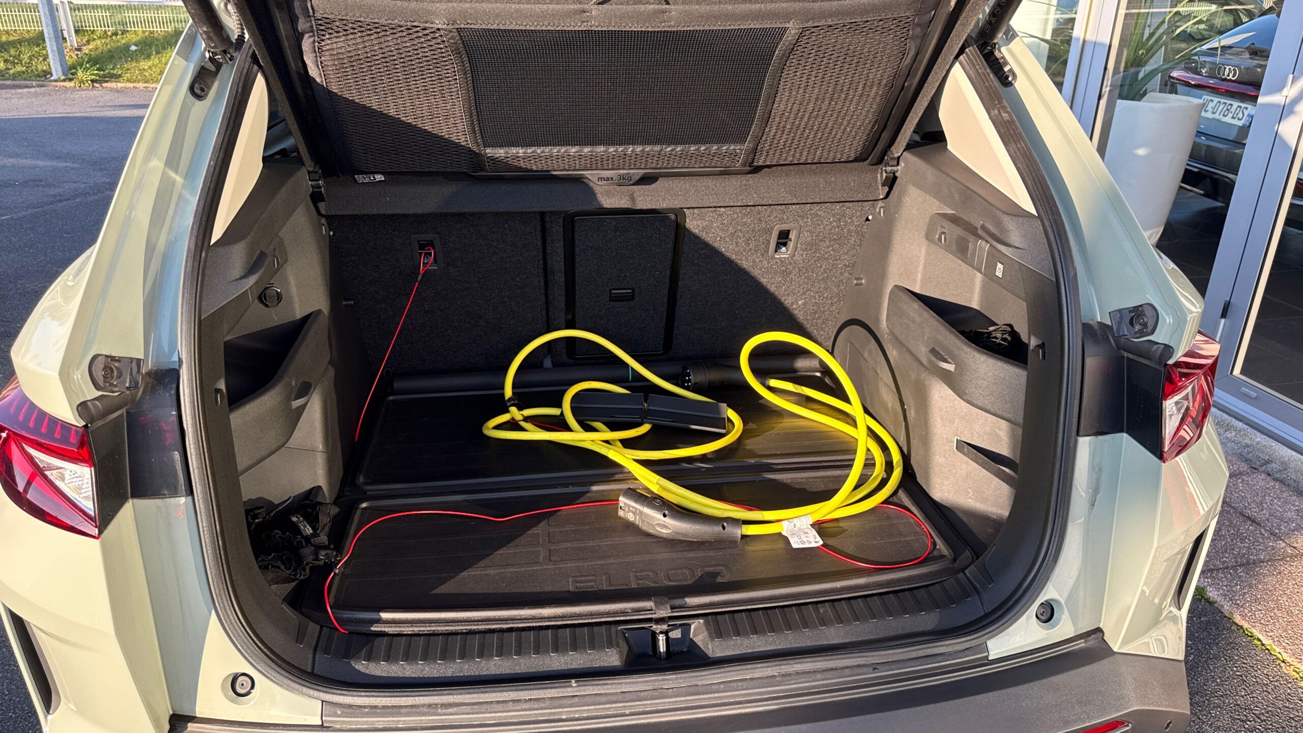 Couvre coffre avec filet de rangement pour câble de recharge