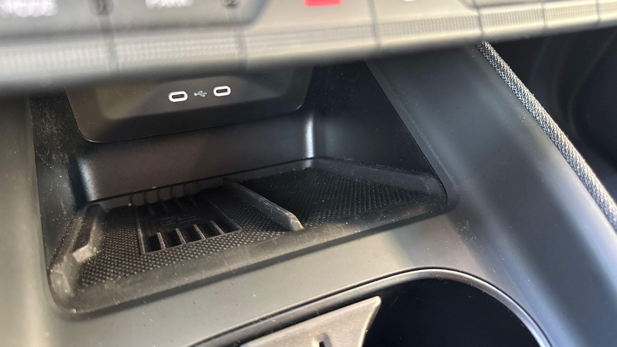 Compartiment de rangement sous la console centrale