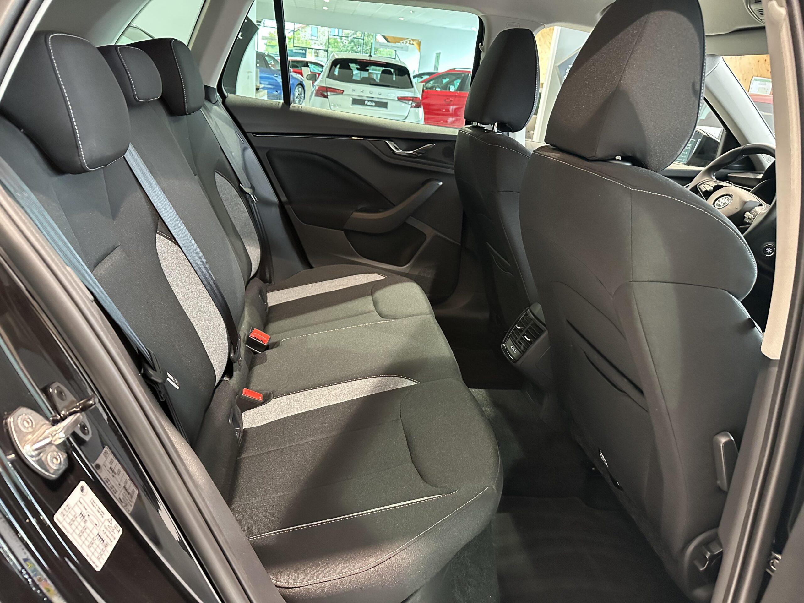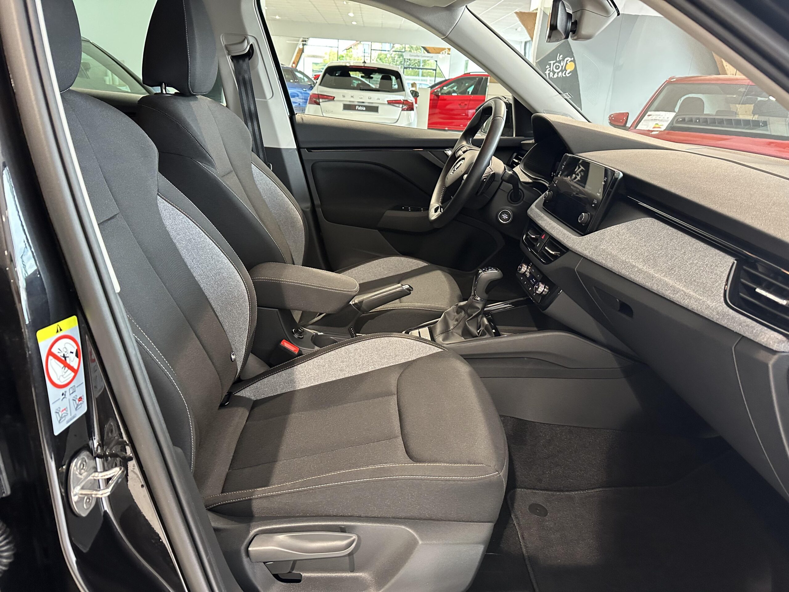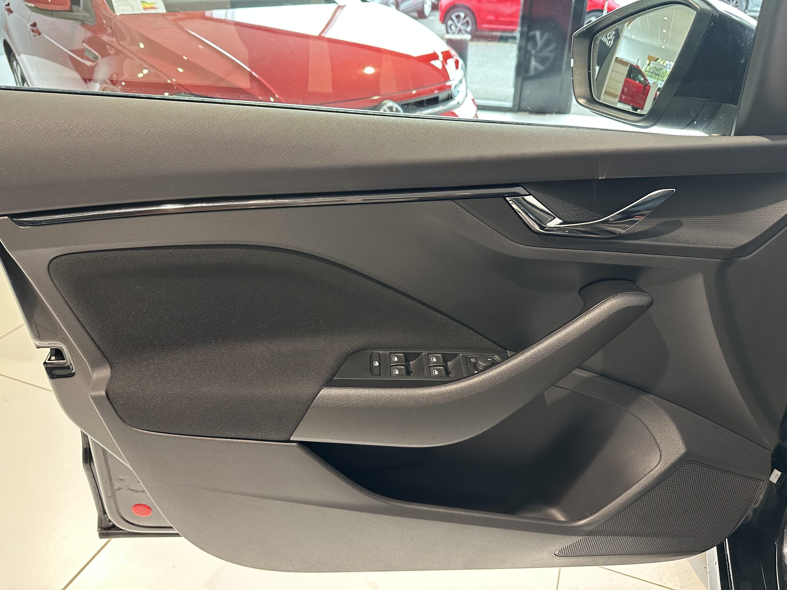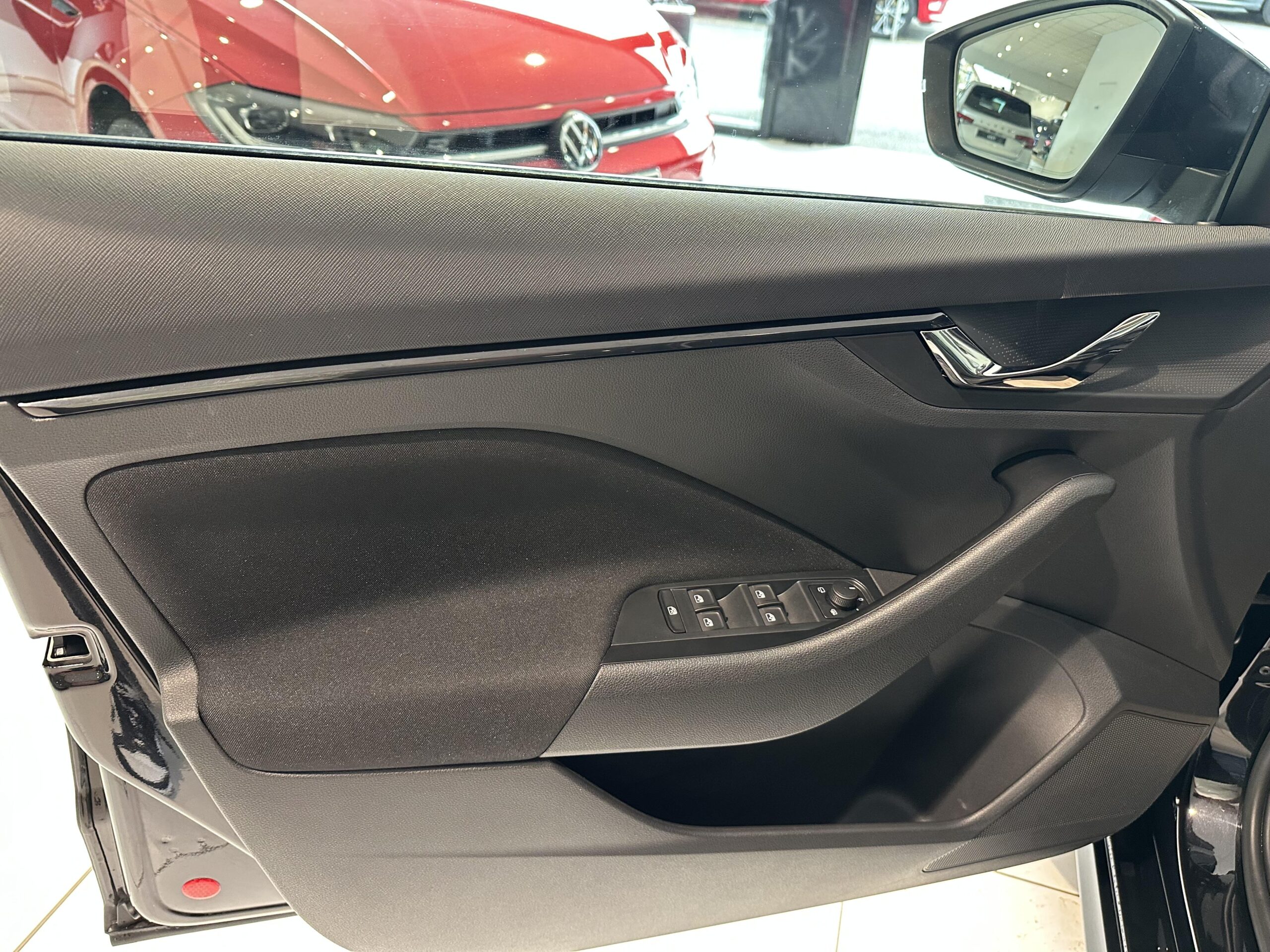 Insert décoratif sur la planche de bord en matériau recyclé gris Krepp recycled, liseré noir glossy et inserts de porte noir "Satin Black"