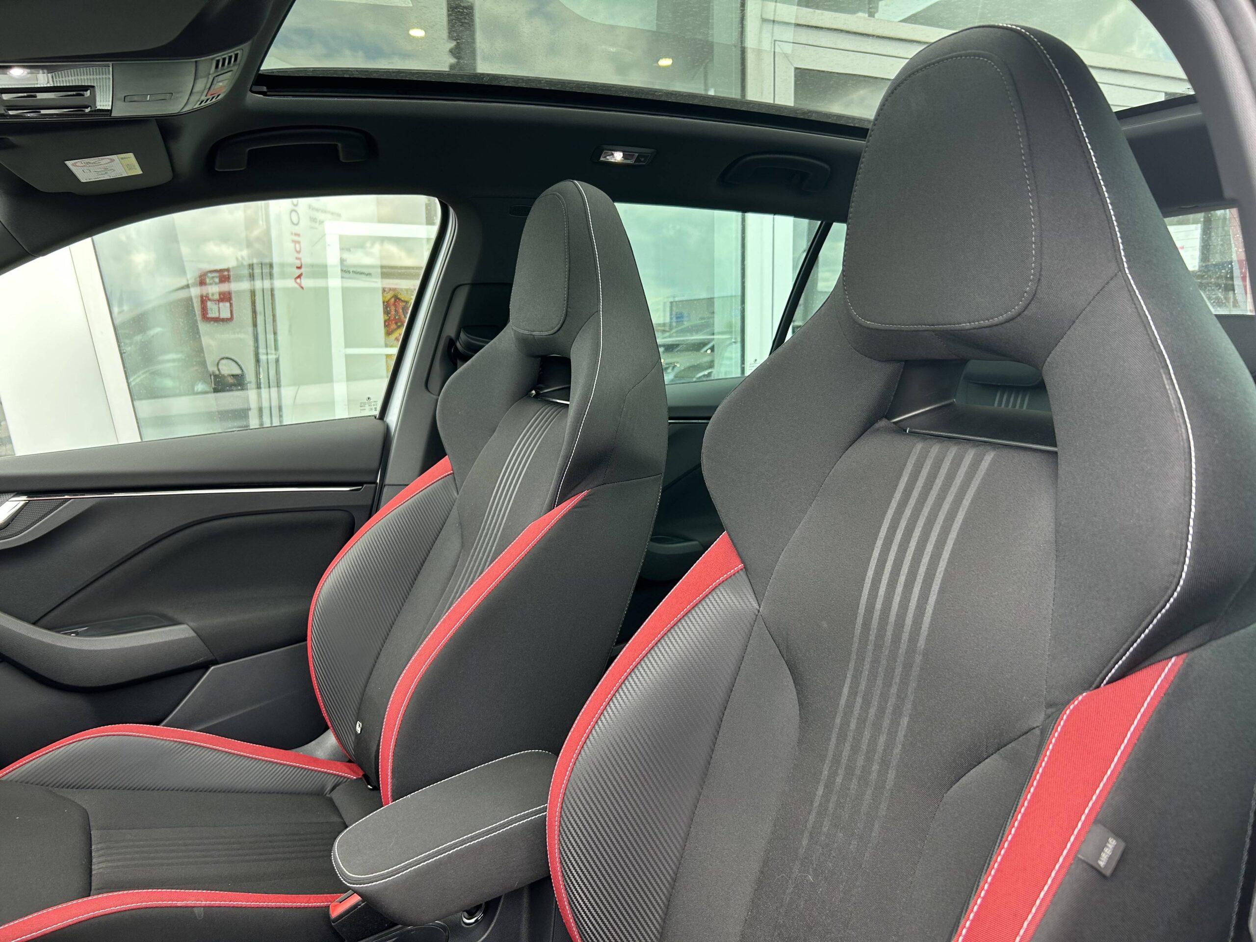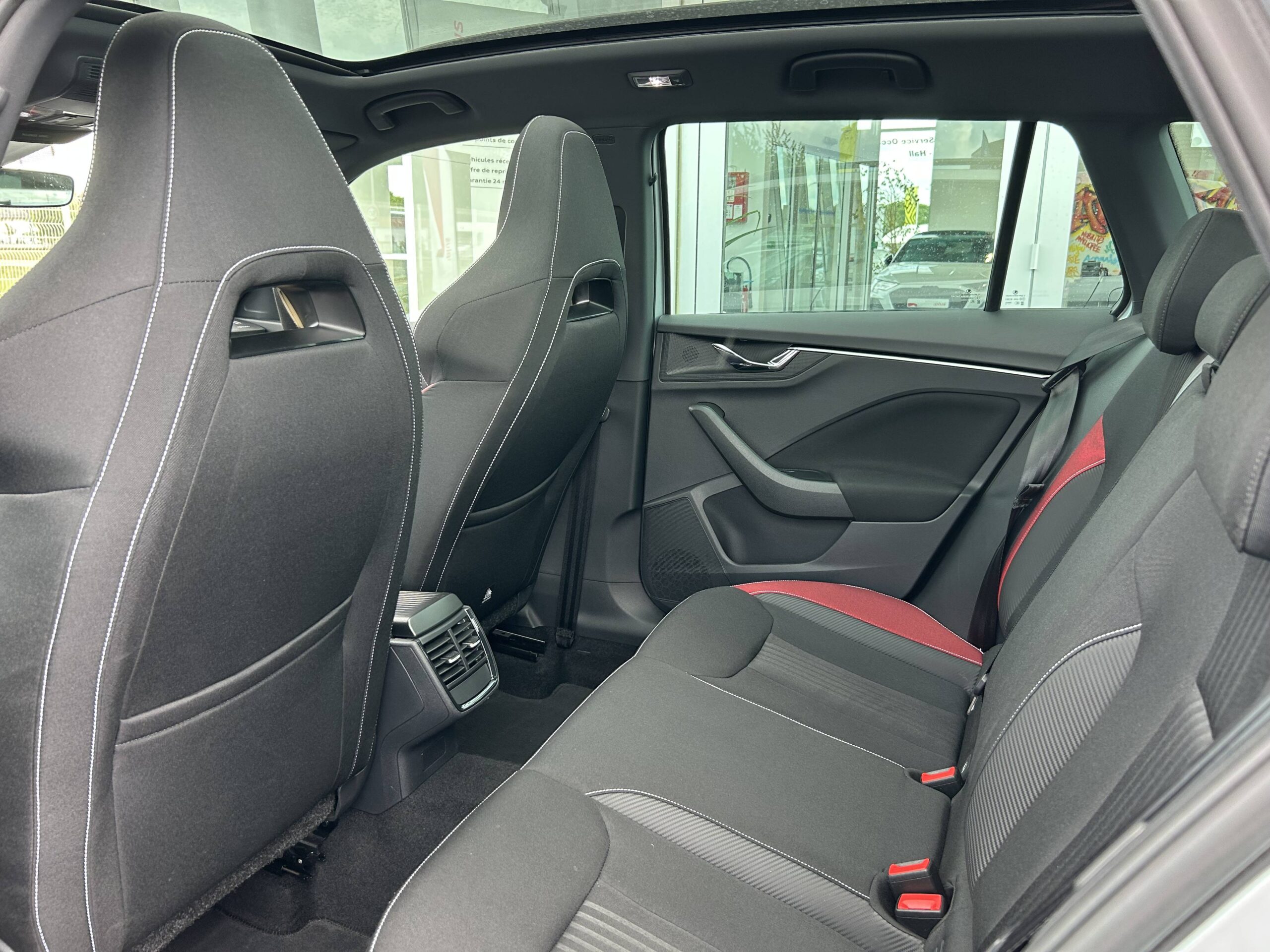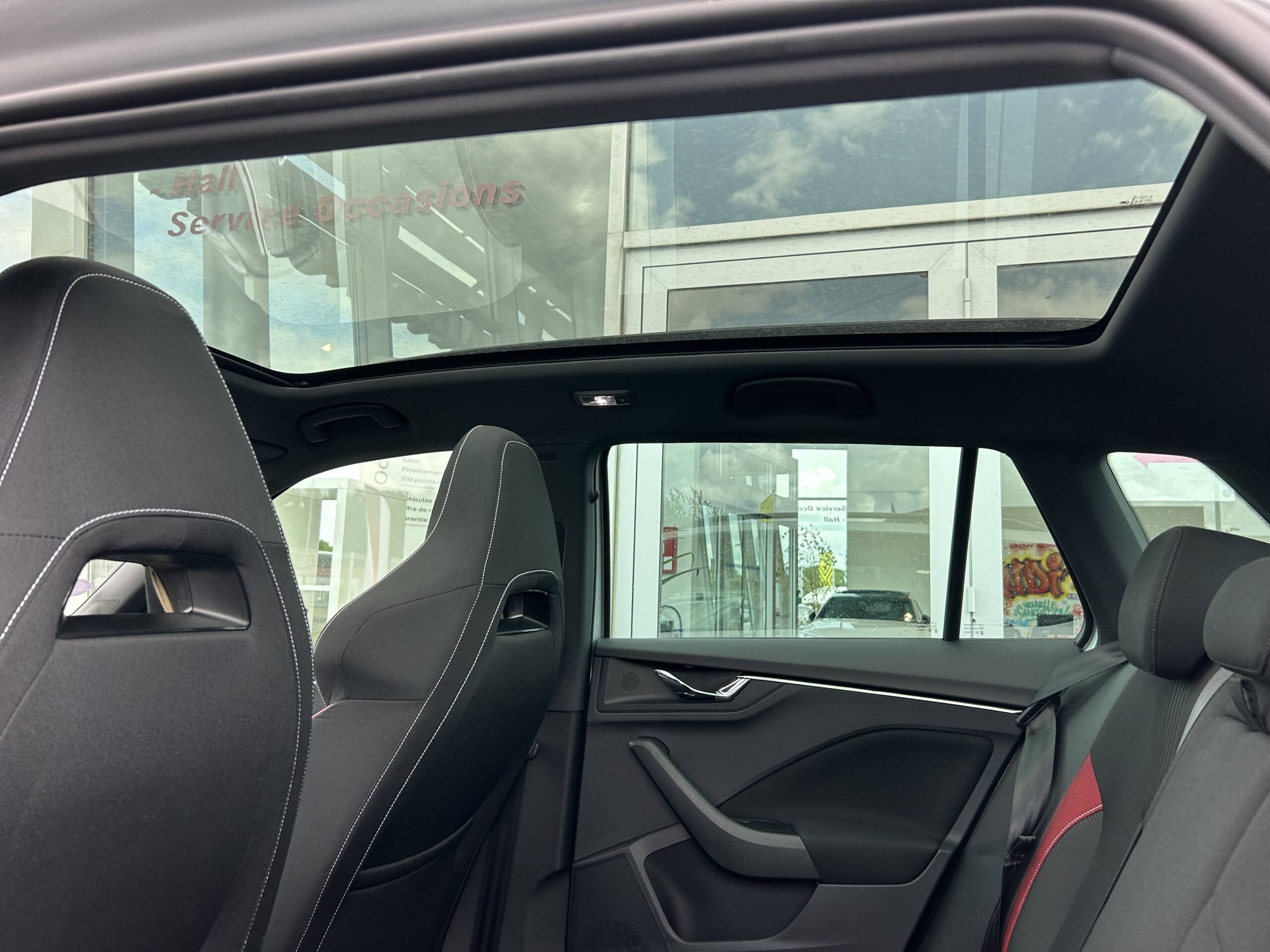 Toit vitré panoramique fixe avec store électrique incluant rampes de pavillon noir laqué et ciel de toit noir