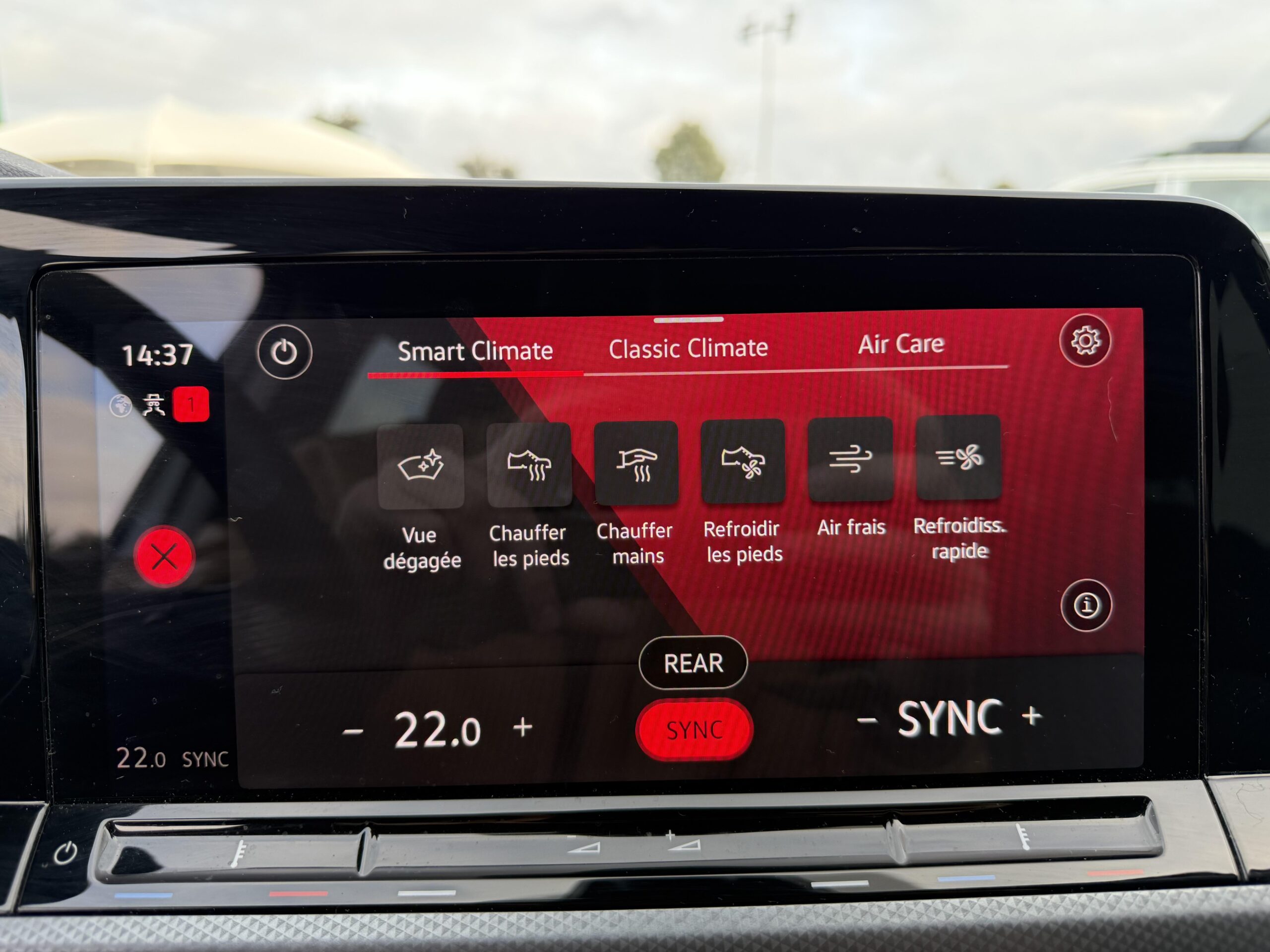 Climatiseur "Air Care Climatronic" 3 zones et filtre anti-allergène et éléments de commandes à l'AR
