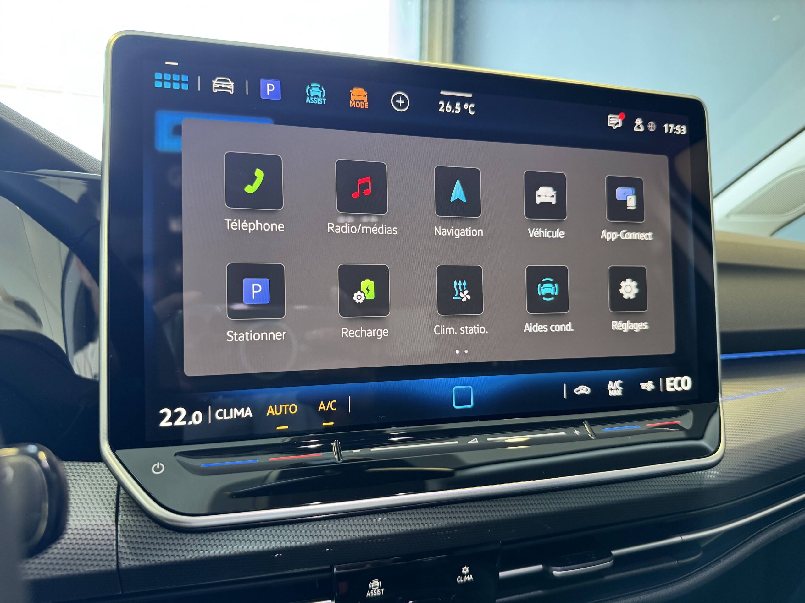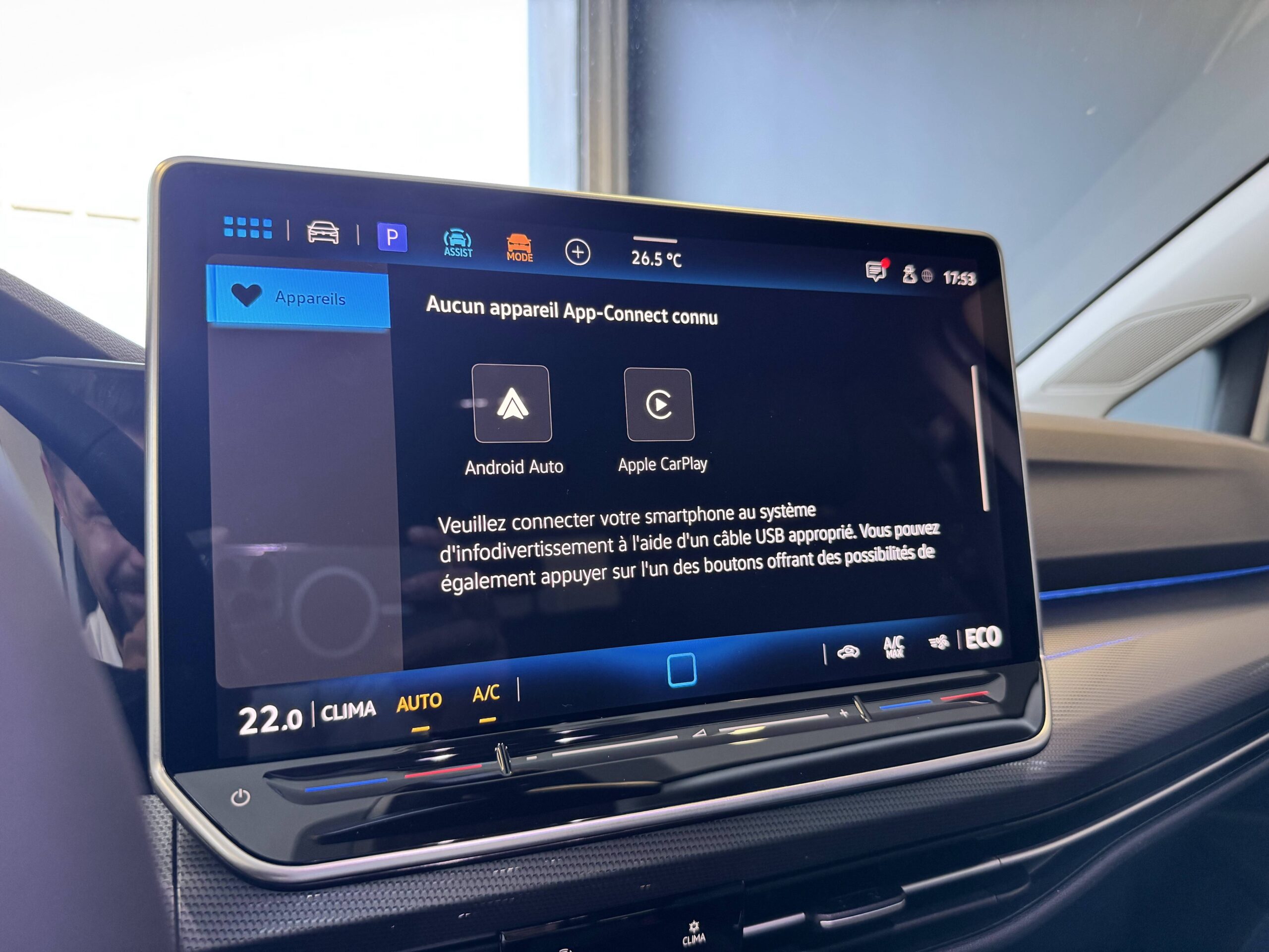 App-Connect sans fil affichage et contrôle via l'écran tactile du véhicule, du contenu, des fonctions et des applications compatibles présents sur le Smartphone (compatibilité avec les systèmes Apple CarPlay et Android Auto)