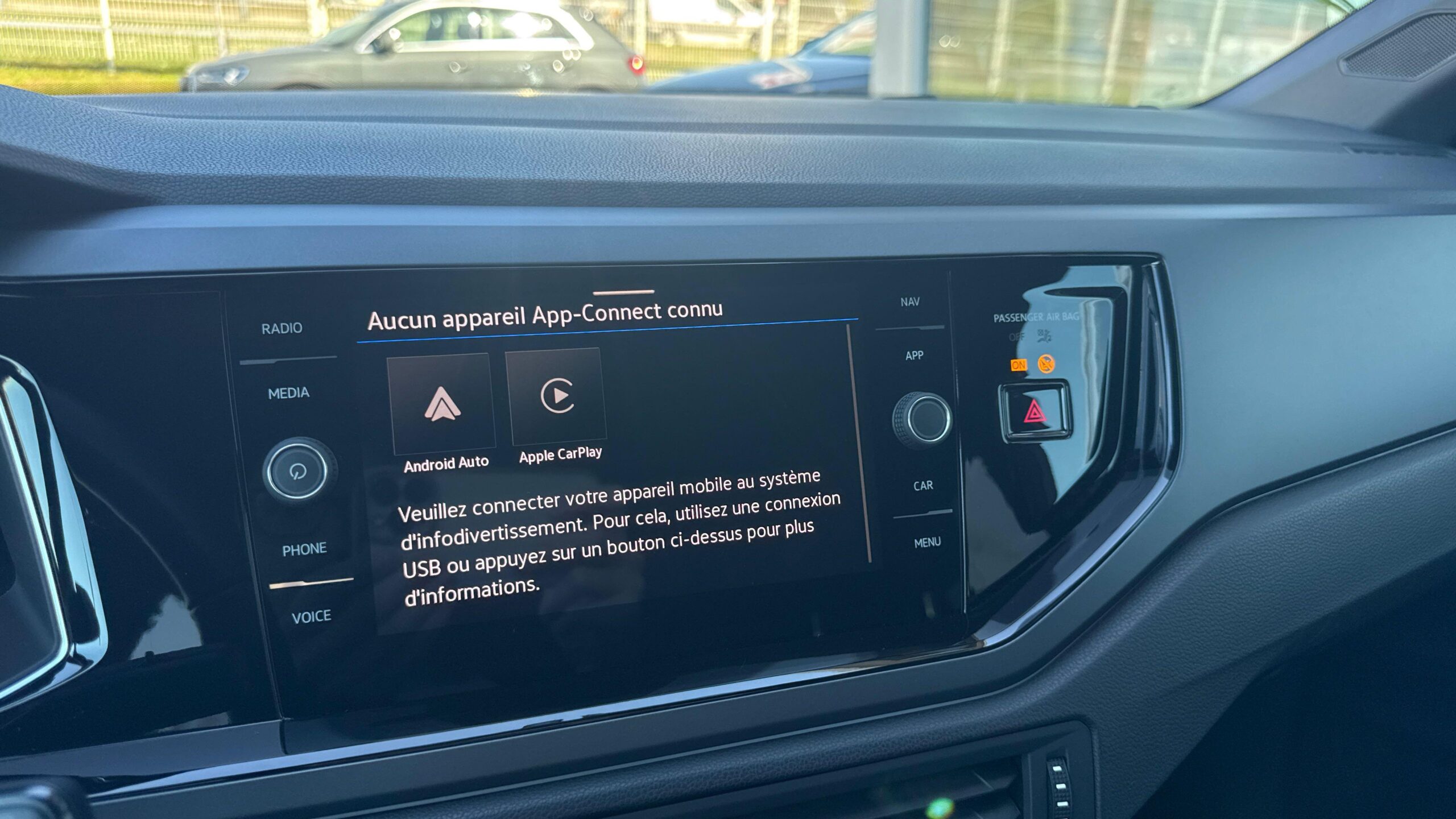 App-Connect sans fil affichage et contrôle via l'écran tactile du véhicule, du contenu, des fonctions et des applications compatibles présents sur le Smartphone (compatibilité avec les systèmes Apple CarPlay et Android Auto). Fonction sans fil uniquement disponible avec Apple CarPlay