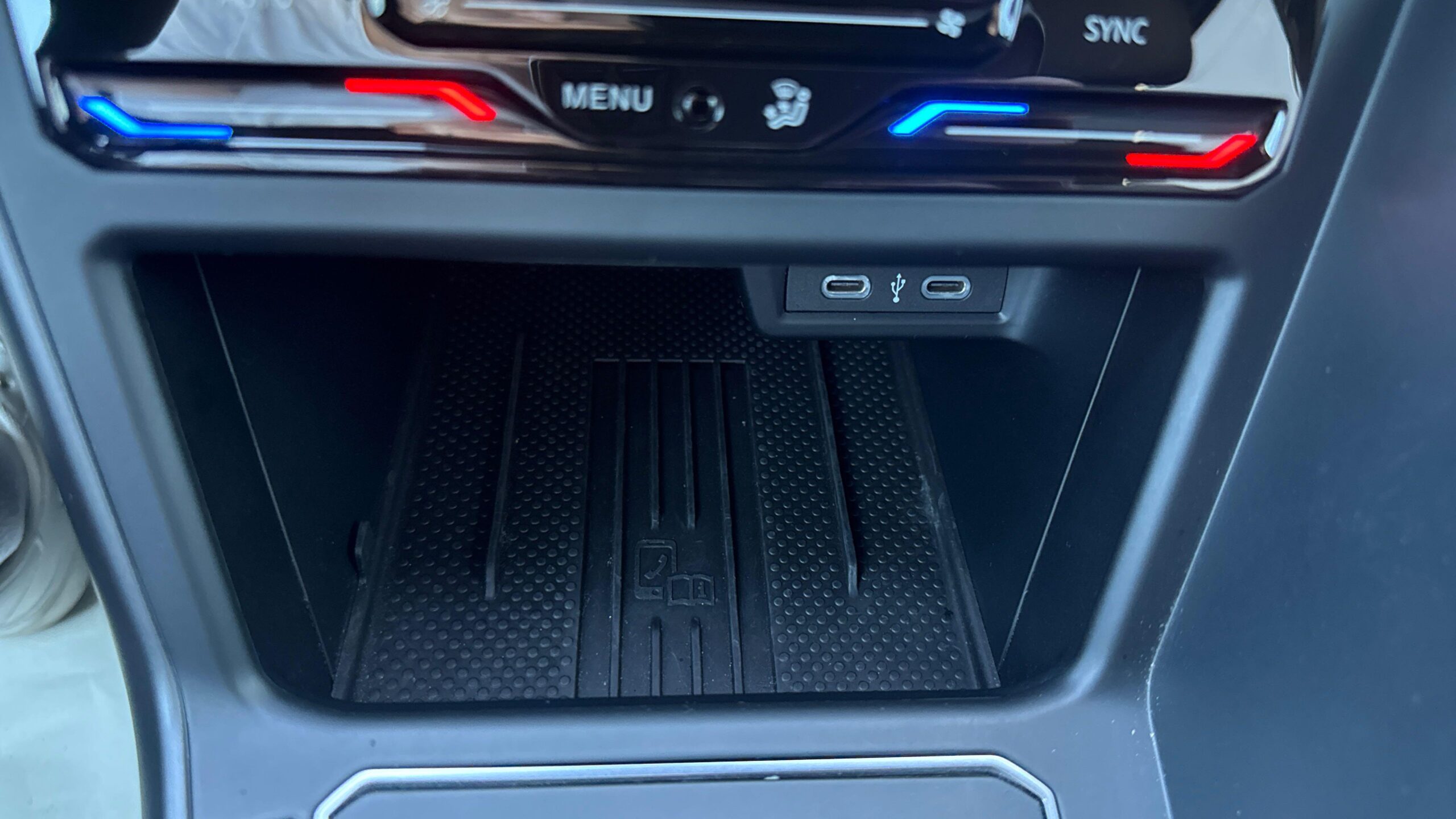 Accoudoir central AV réglable en longueur avec compartiment de rangement et 2 ports USB-C de recharge AR