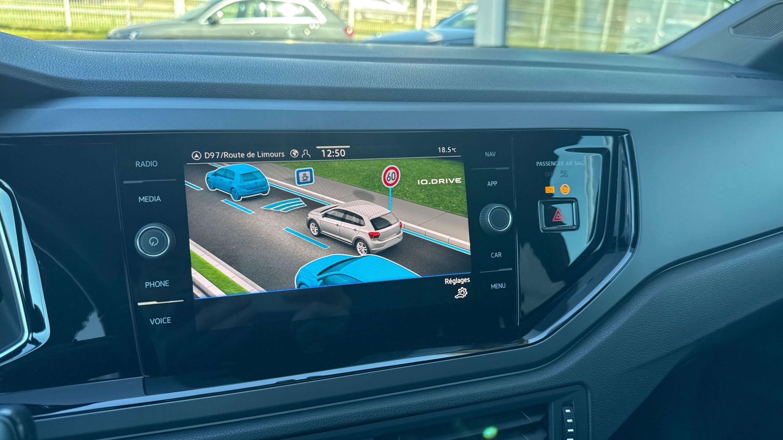 Front Assist: système de surveillance périmétrique contribuant à la prévention des collisions avec fonction de détection des piétons et des cyclistes. Ce système freine automatiquement le véhicule en cas de détection d'obstacle aussi bien en ville que sur autoroute