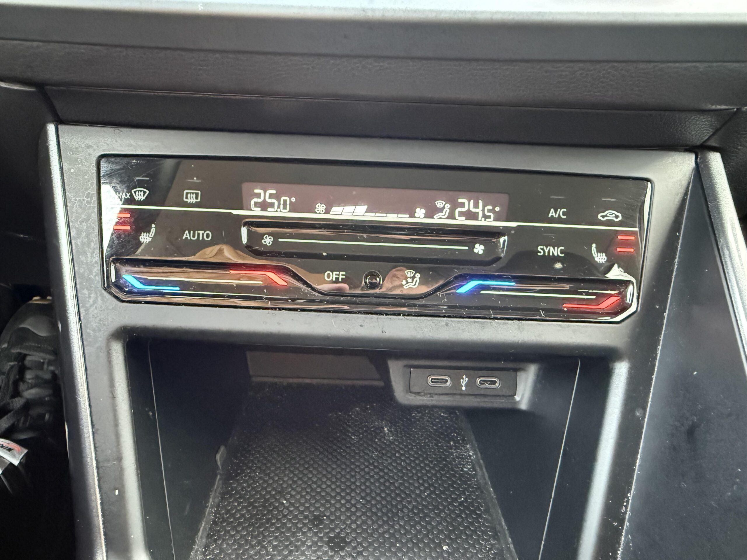 Accoudoir central AV réglable en longueur avec compartiment de rangement et 2 ports USB-C de recharge AR