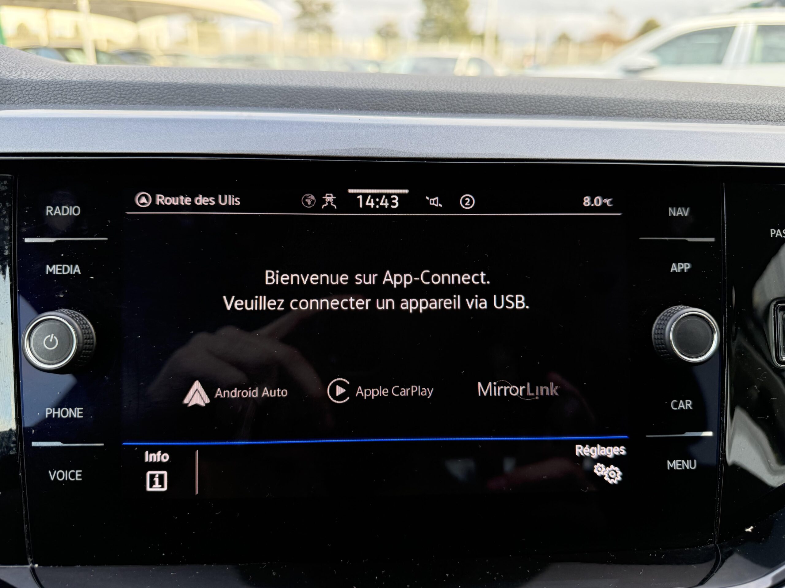Système Navigation & Infotainment "Discover Media" avec écran couleur tactile 8'' avec «Services de streaming et radio via Internet» via carte eSIM intégrée : Radionavigation 6 HP 4 x 20 W), Écran couleur tactile 8'' (1240 x 1080 pixels), Système de navigation, Affichage de la carte en 2D et 3D, Trois calculs d'itinéraire possible (rapide, court et économique), Sign Assist' et affichage sur le Digital Cockpit' et l'écran du système de radionavigation, Préparation pour We Connect' et We Connect Plus