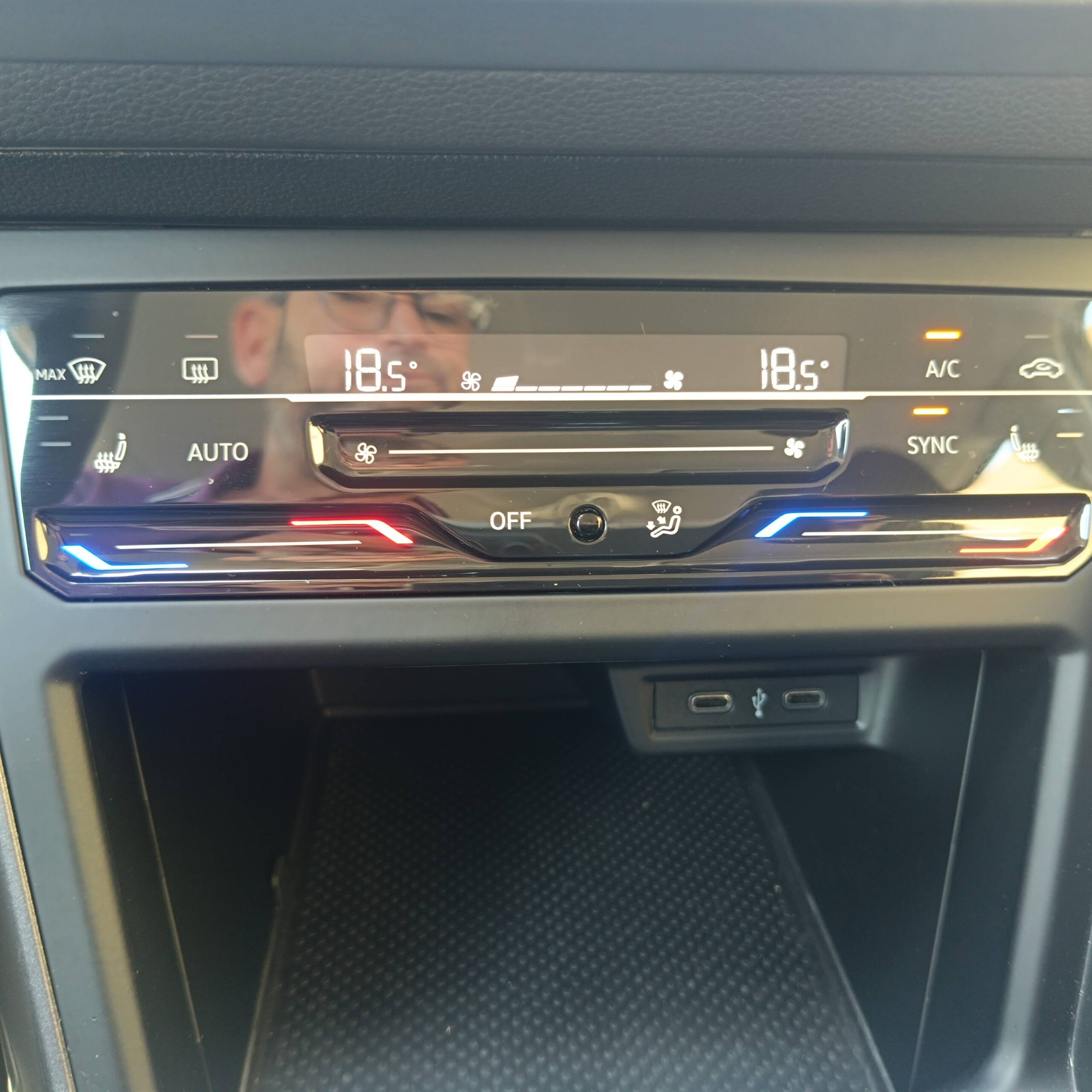 Accoudoir central AV réglable en longueur avec compartiment de rangement et 2 ports USB-C de recharge AR