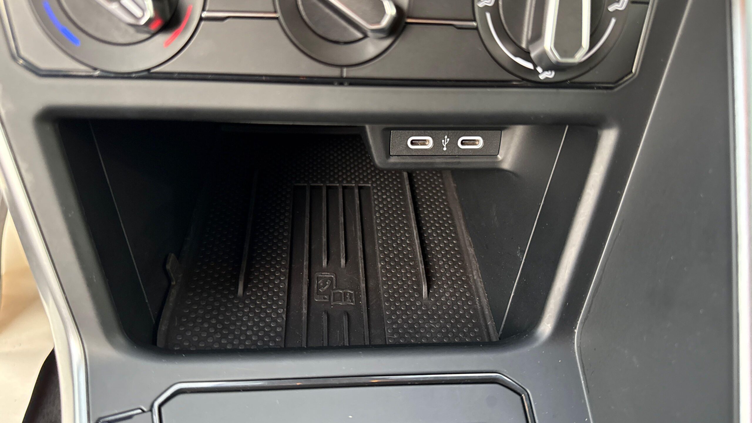 Accoudoir central AV réglable en longueur avec compartiment de rangement et 2 ports USB-C de recharge AR