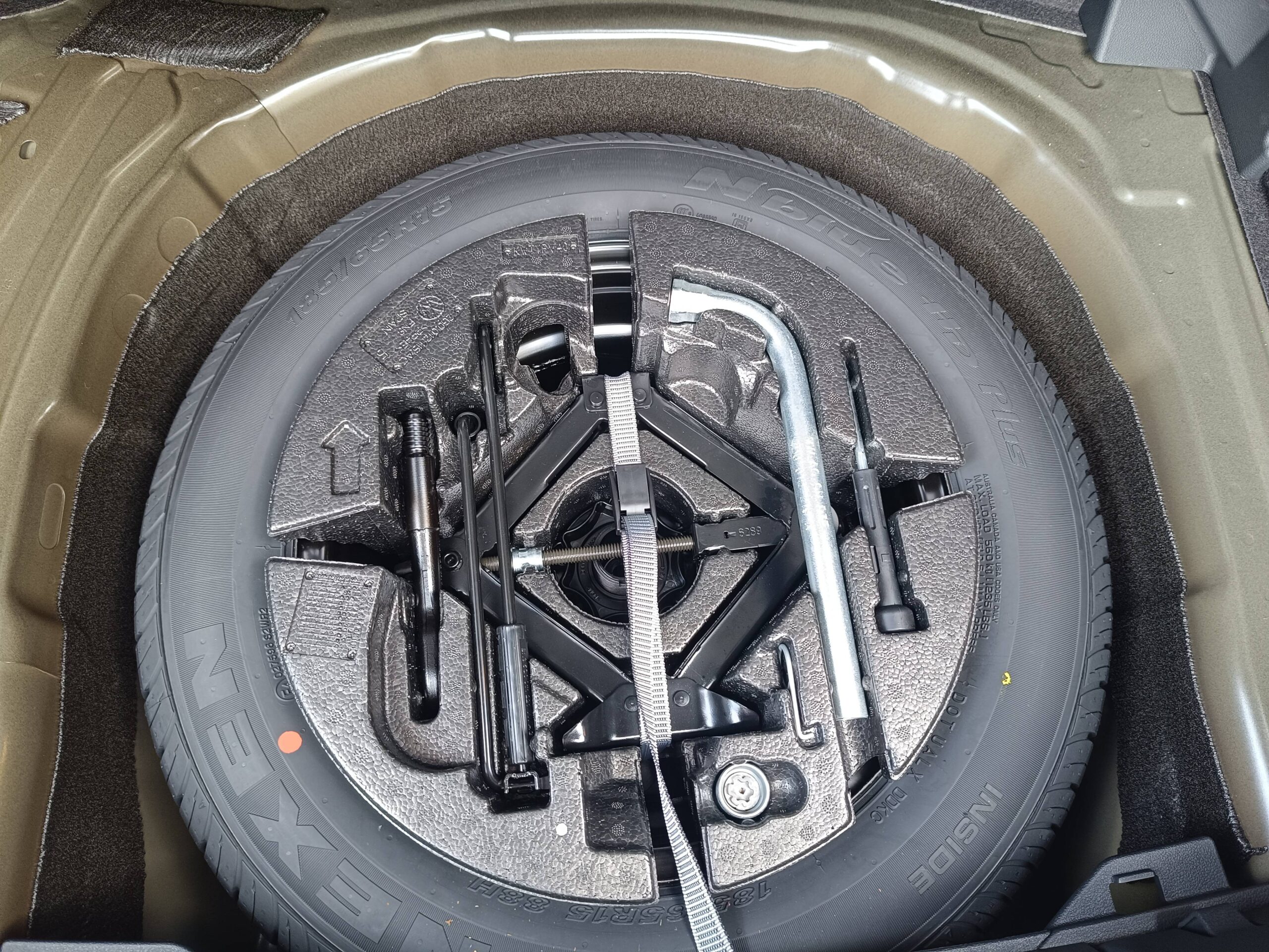 Roue de secours 15'' à encombrement réduit, outillage de bord et cric (vitesse limitée à 80 km/h)