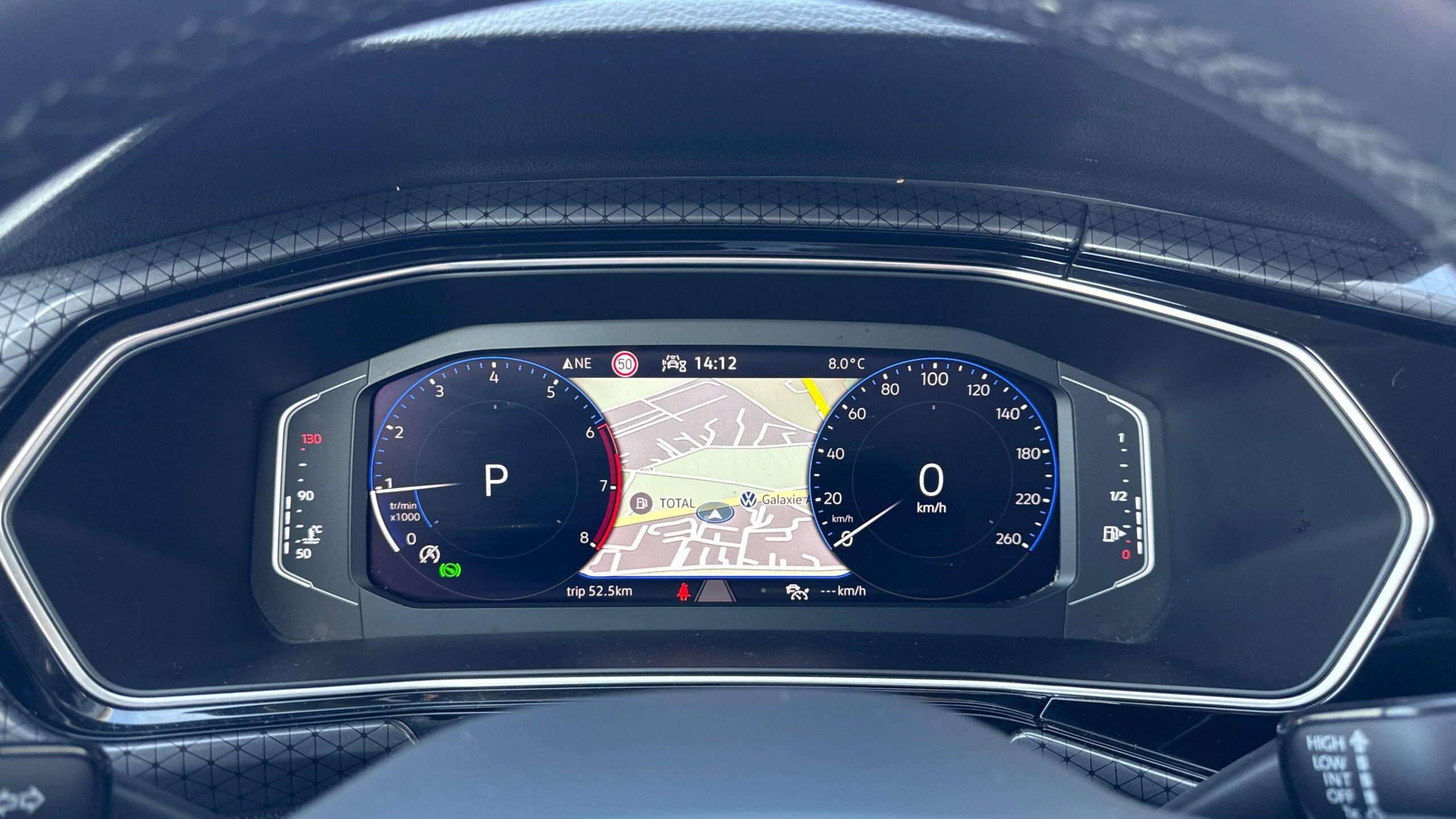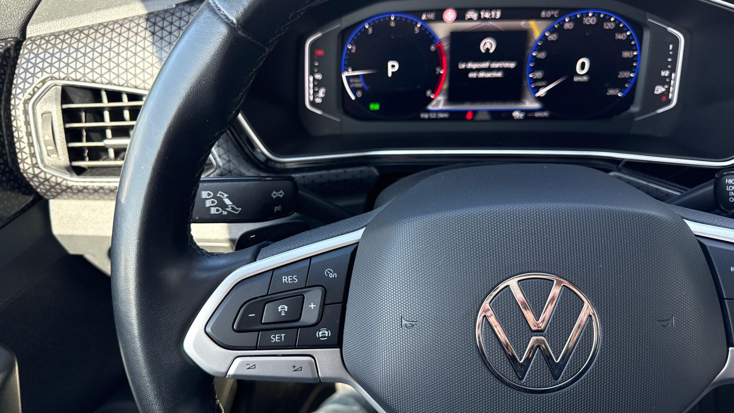 Régulateur de vitesse adaptatif ACC : détecte dans les limites du systéme et l'aide d'un capteur radar les véhicules qui précèdent et maintient la distance en intervenant sur les freins et l'accélérateur (régulation active de 30 à 160 km/h pour boîte manuelle, de 0 à 160 km/h pour boîte DSG ; jusqu'à l'arrêt du véhicule uniquement avec DSG). Le conducteur peut calibrer la distance souhaitée par rapport aux autres automobilistes selon quatre niveaux