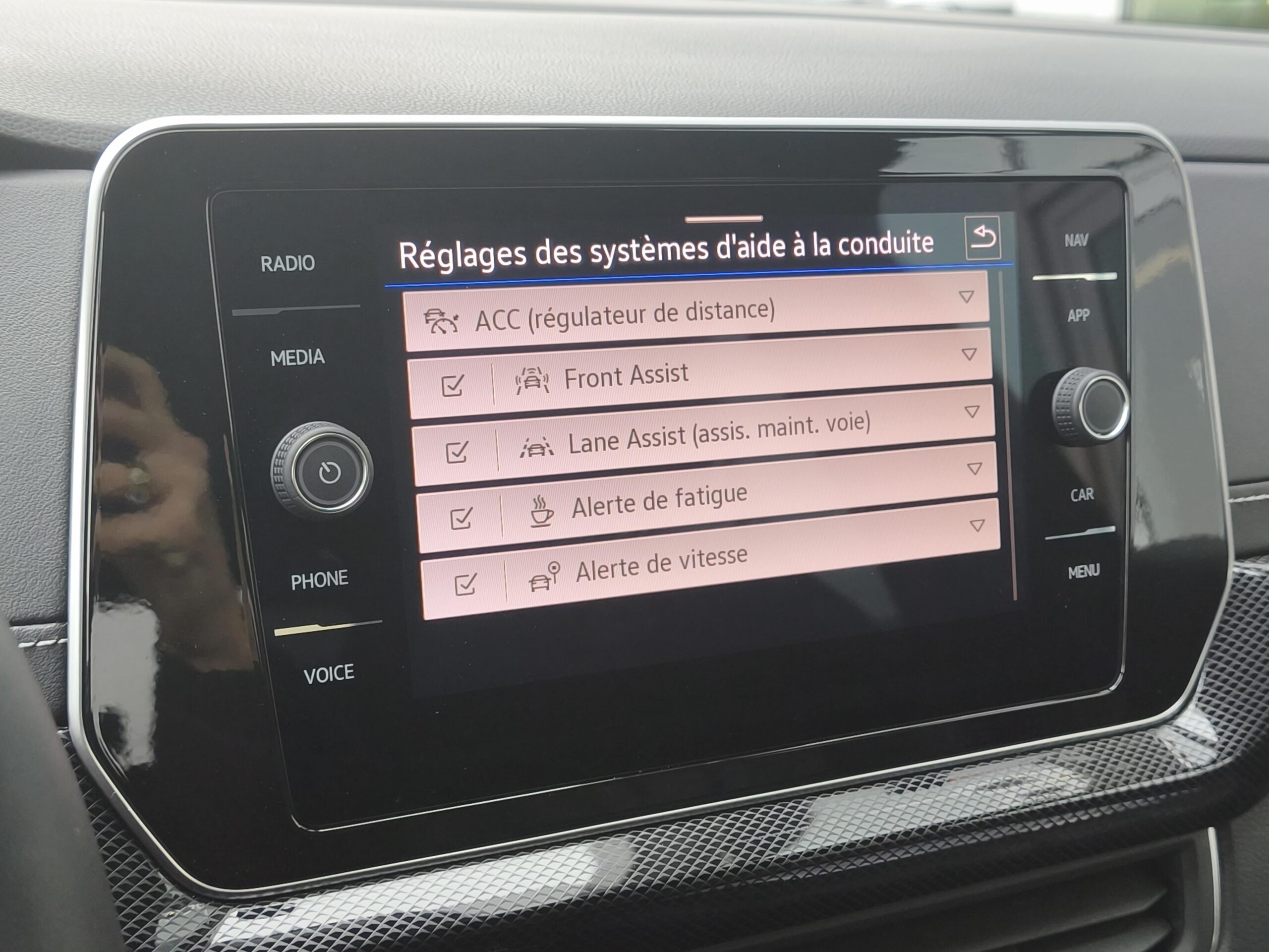 Lane Assist: Assistant de maintien de trajectoire qui corrige, dans la limite du système, le mouvement du volant avant que le véhicule dépasse involontairement la bande de roulement. Système actif à partir de 65 km/h
