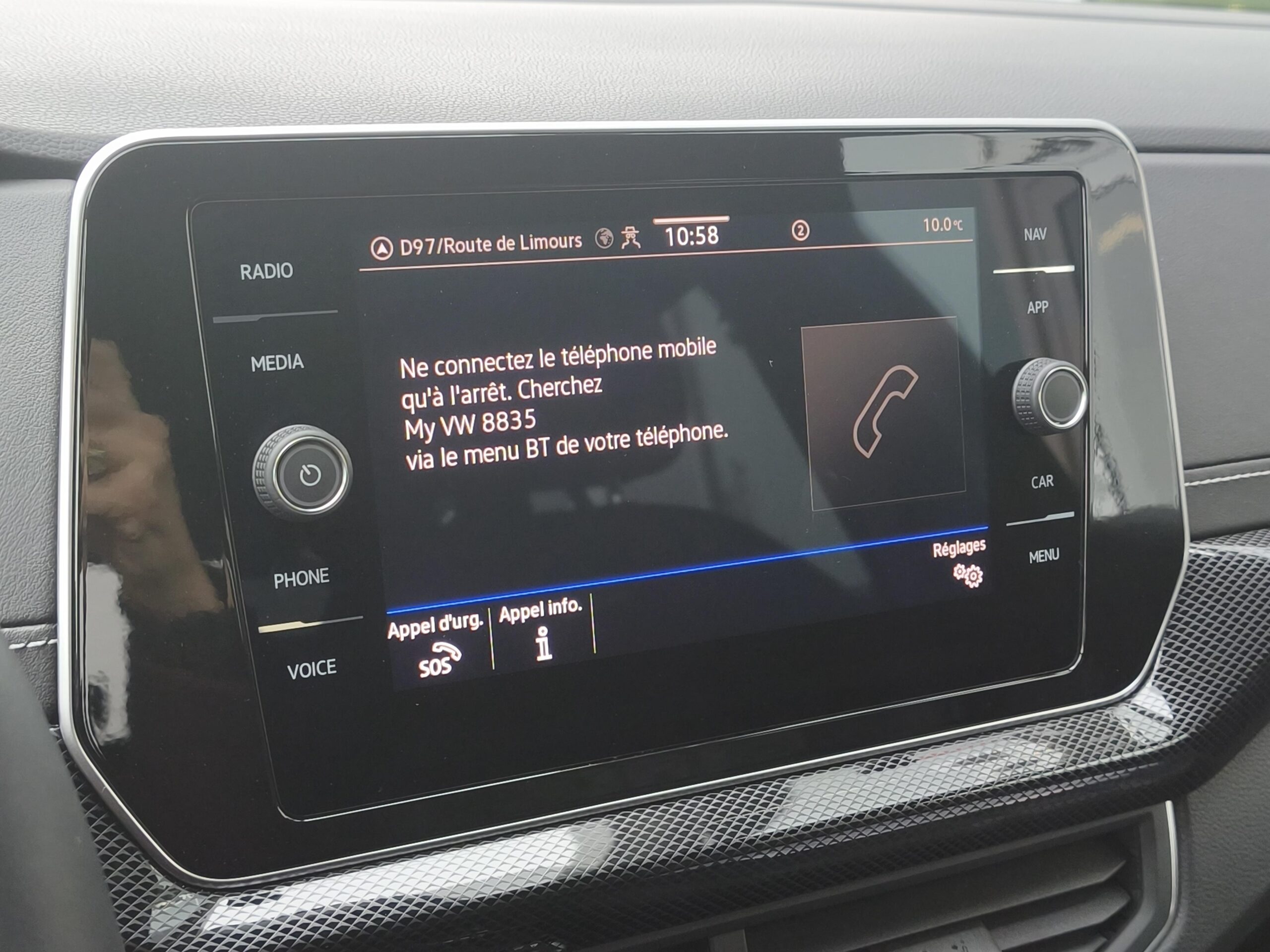 App-Connect sans fil: affichage et contrôle via l'écran tactile de la voiture, du contenu, des fonctions et des applications compatibles présents sur le Smartphone (compatibilité avec les systèmes Apple CarPlay et Android Auto). Fonction sans fil uniquement disponible avec Apple CarPlay