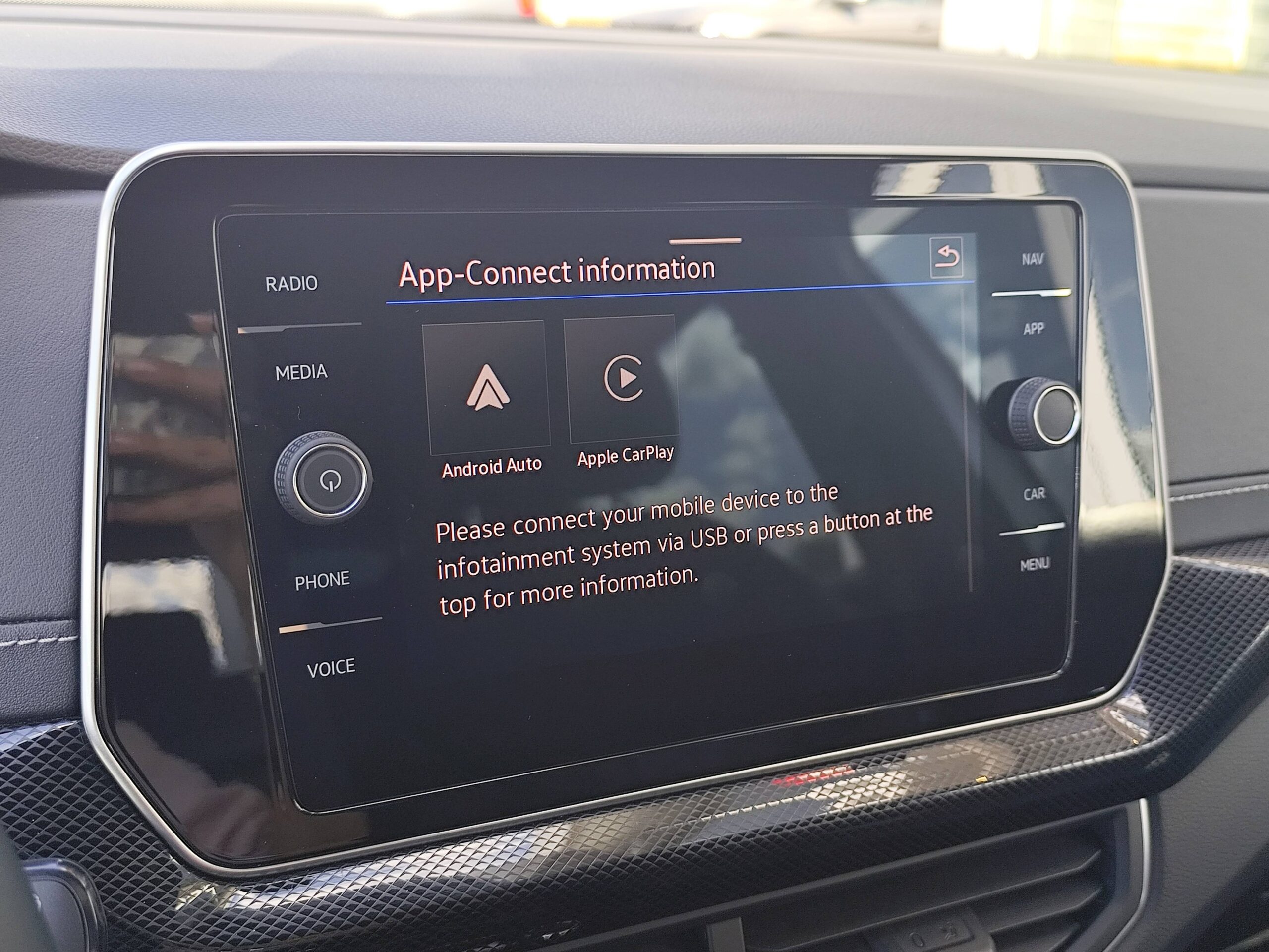 App-Connect sans fil, affichage et contrôle via l'écran tactile de la voiture du contenu, des fonctions et des applications compatibles présents sur le Smartphone (compatibilité avec les systèmes Apple CarPlay et Android Auto). Fonction sans fil uniquement disponible avec Apple CarPlay