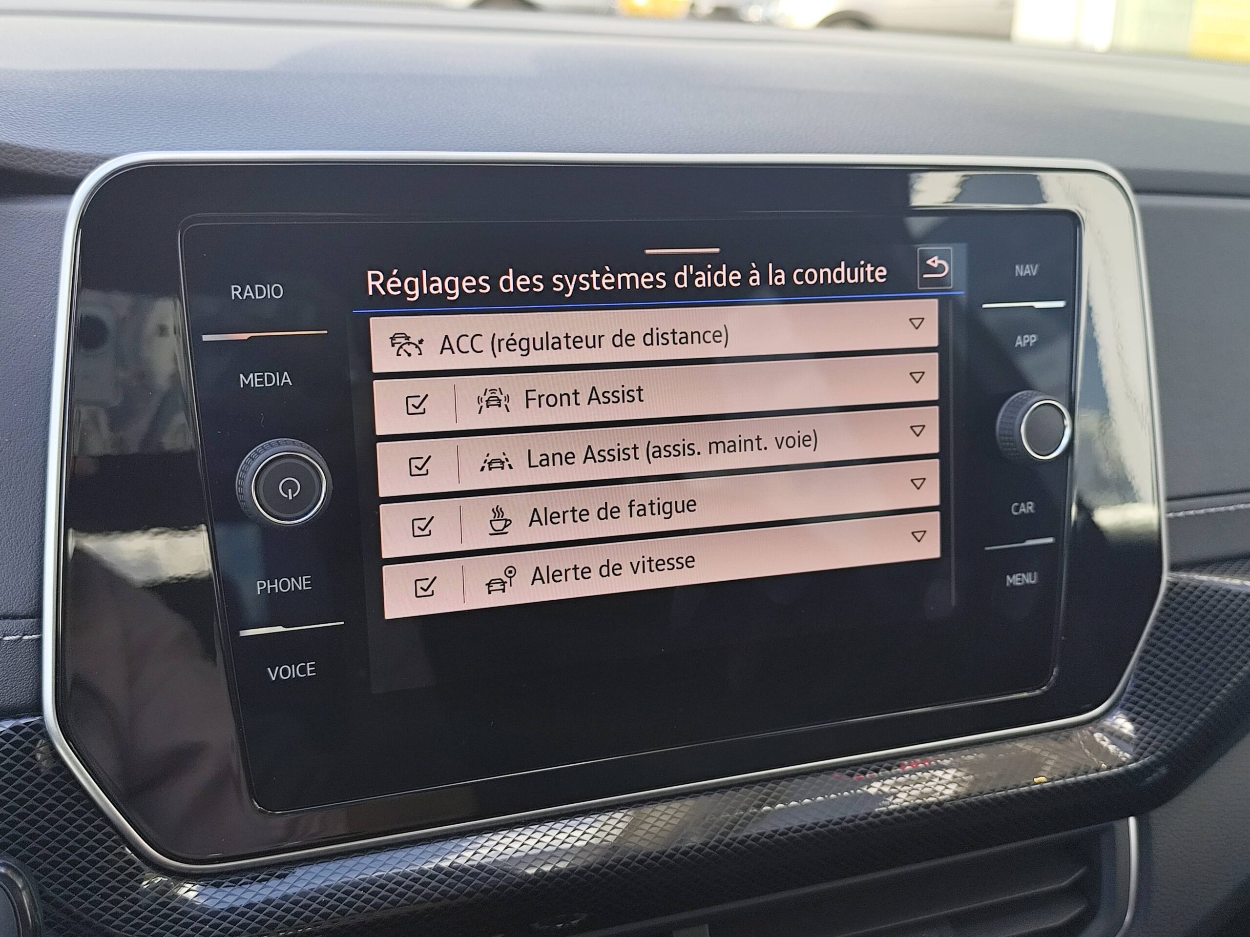 Radionavigation 6 HP AV/AR (4x20W) avec: Système Navigation & Infotainment "Discover Media" avec Services de streaming et radio via Internet via carte eSIM intégrée Écran couleur tactile 8" haute résolution (800x480) Double tuner FM Affichage de la plage de lecture, du logo de la station à l'écoute Lecture des formats audio MP3 Port USB-C compatible Apple Affichage de la carte en 2D Affichage des logos des Points d'intéret, des limitations de vitesse, des zones de danger, etc. Interface Bluetooth avec fonction Audio Streaming A2DP Préparation pour "VW Connect" et "VW Connect Plus"