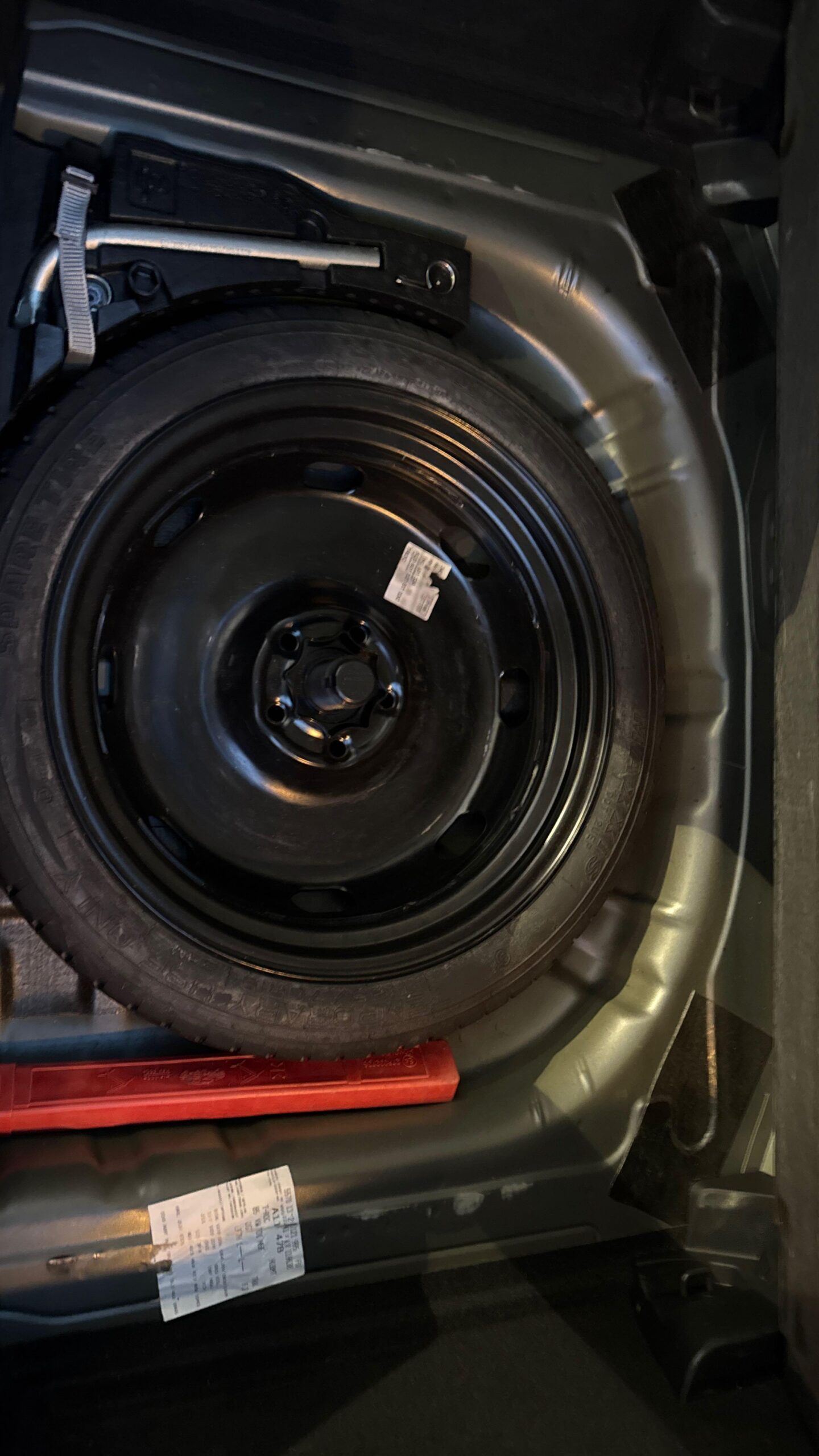 Roue de secours à encombrement réduit avec cric (vitesse limitée à 80 km/h) Remplace le kit de dépannage