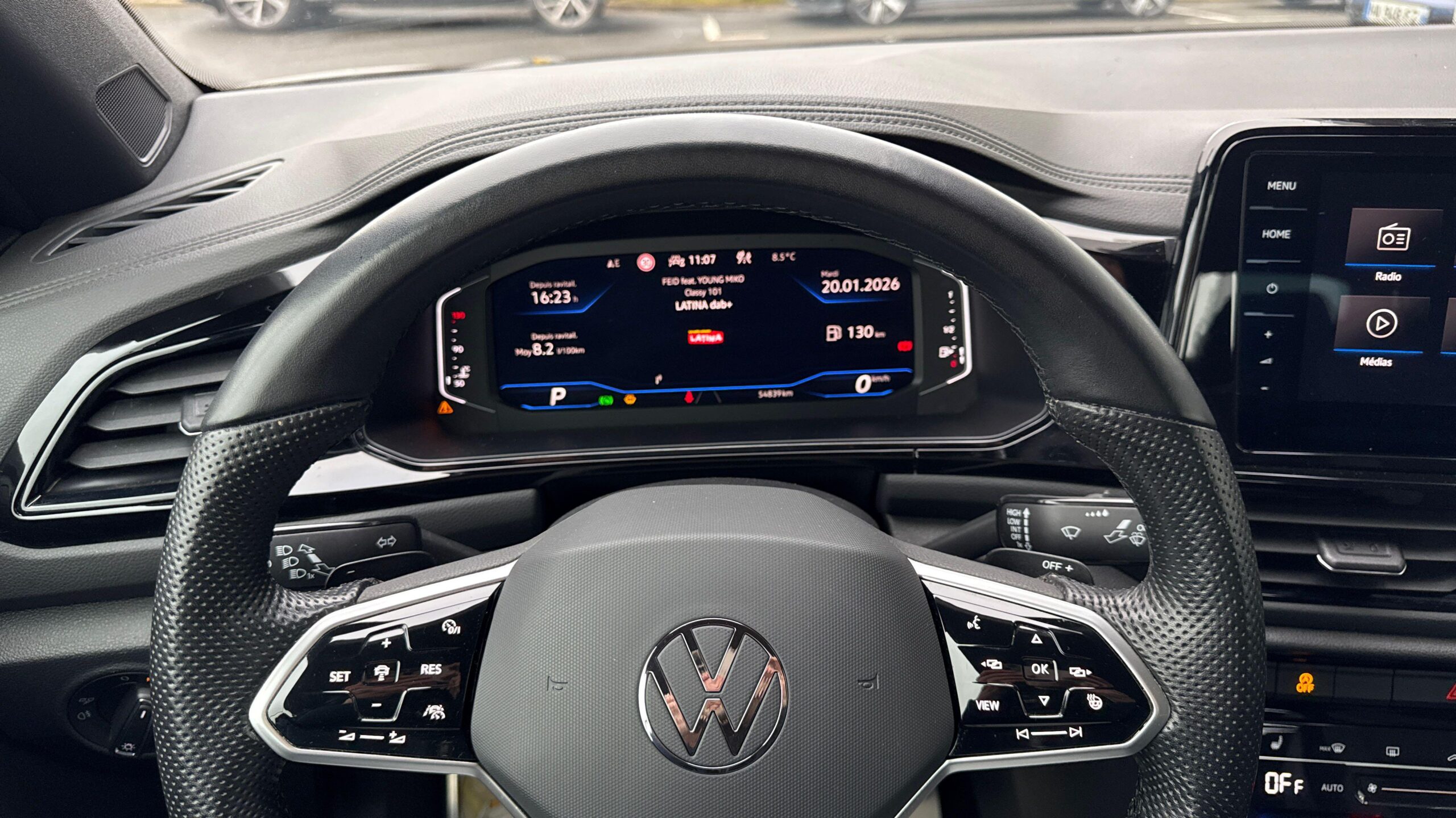 Volant sport multifonction à touches physiques en cuir et logo R-Line