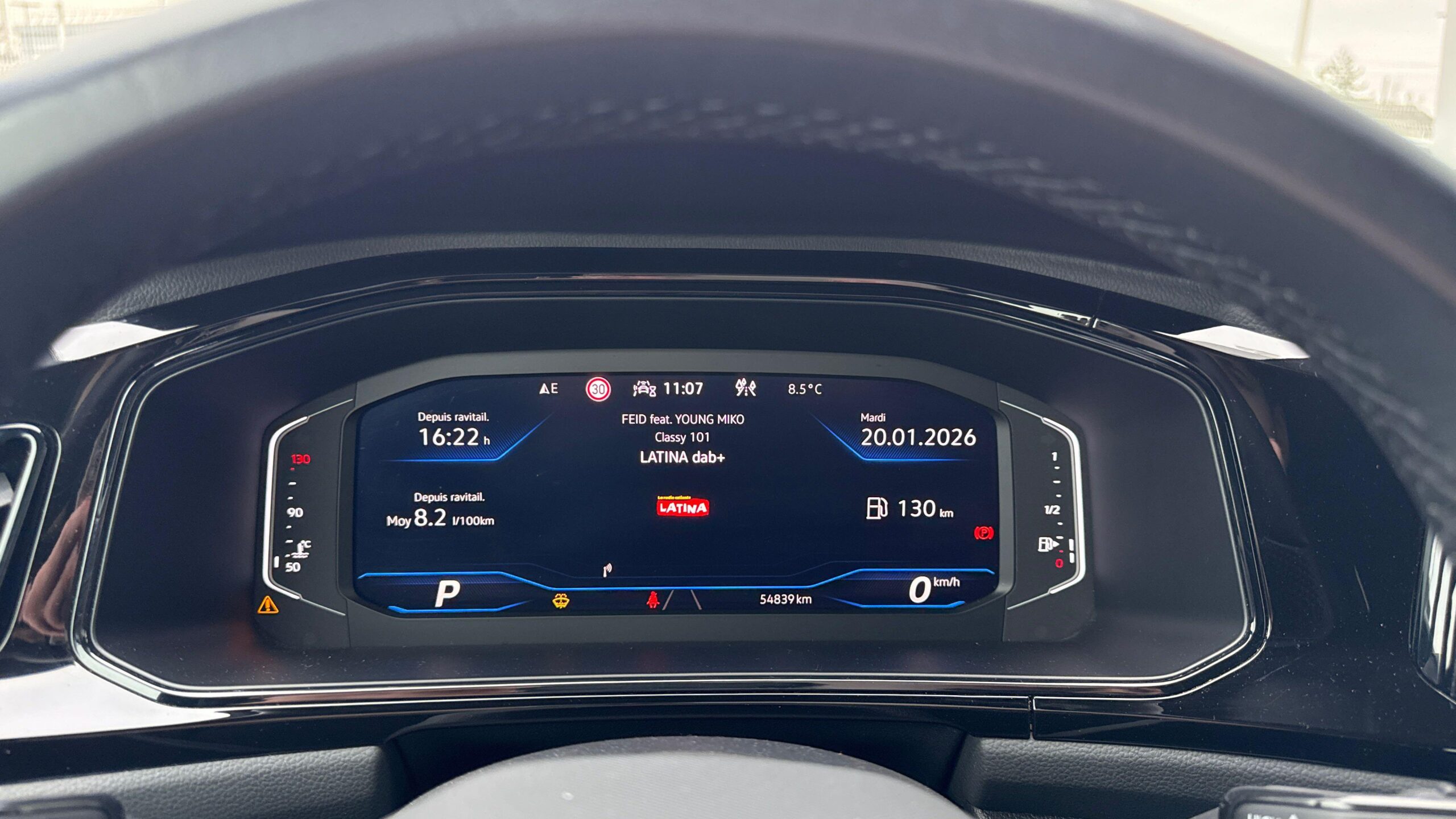 Système Navigation & Infotainment "Discover Pro" avec "Services de streaming et radio via Internet" via carte eSIM intégrée: Radionavigation 6 haut-parleurs (4 x 20 W) reprenant les fonctionnalités du Discover Media, avec en plus: - Écran couleur tactile 9,2 haute résolution (1240 x 1080 pixels) - Commande vocale : contrôle de la navigation et du téléphone (composition dun numéro puis appel) En combinaison avec Digital Cockpit Pro, la navigation peut être affichée sur lécran de radio et sur lécran du Cockpit - Préparation pour We Connect et We Connect Plus