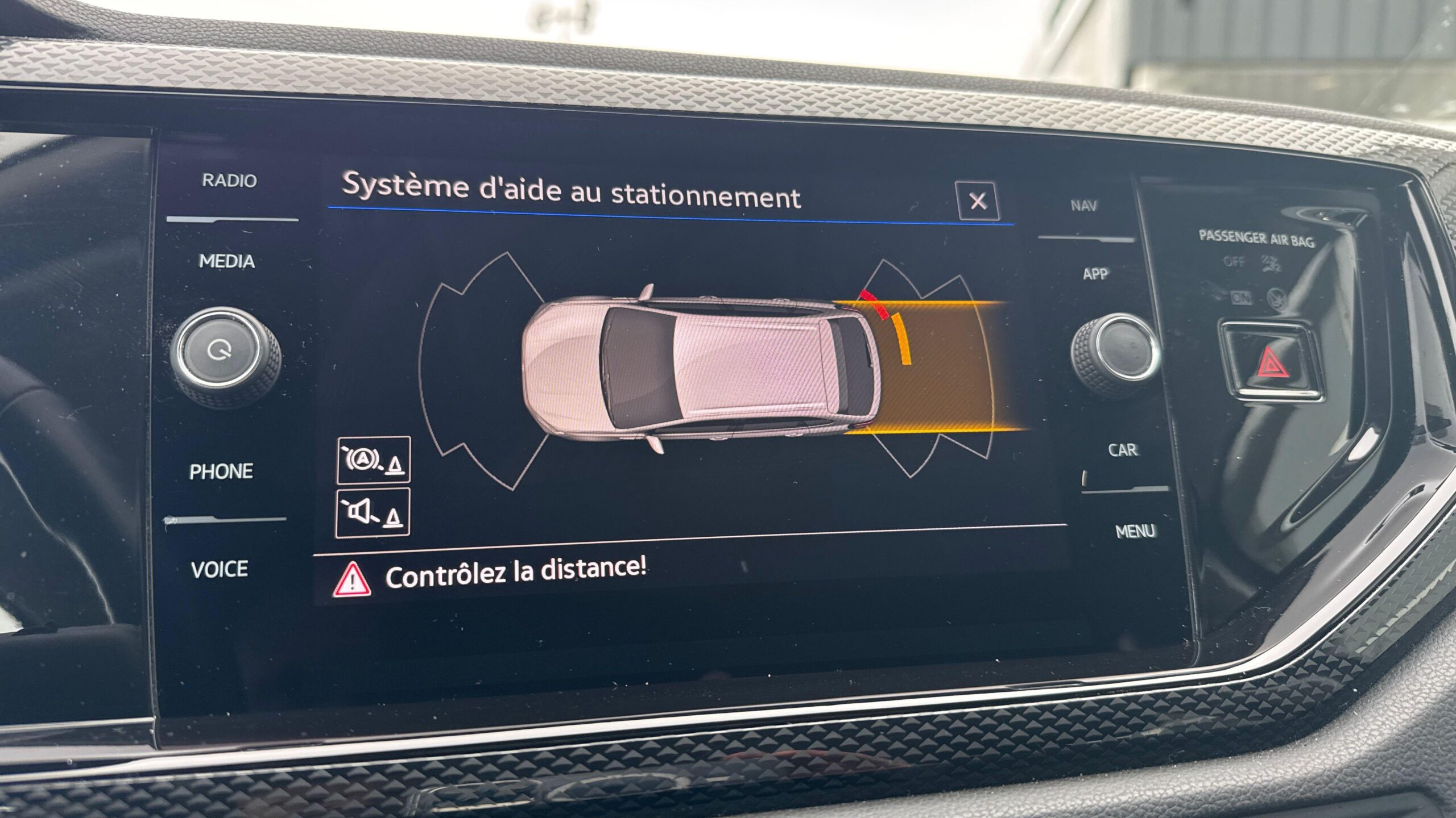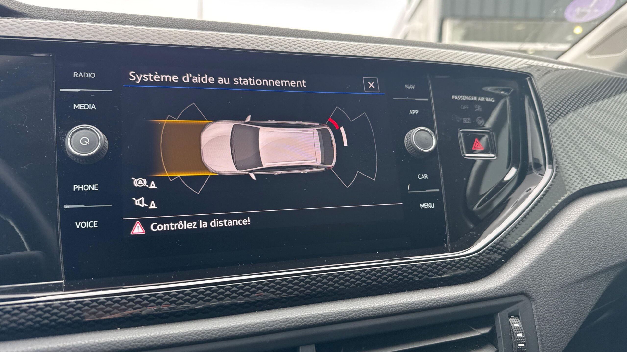 Front Assist: système de surveillance périmétrique contribuant à la prévention des collisions avec fonction de détection des piétons et des cyclistes. Ce système freine automatiquement le véhicule en cas de détection d'obstacle aussi bien en ville que sur autoroute
