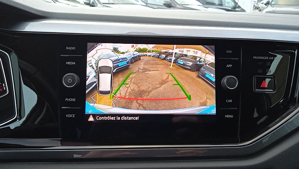 Rear view: - pllus quune caméra de recul, elle affiche des indications visuelles sur lécran central pour faciliter les manoeuvres de recul et de stationnement