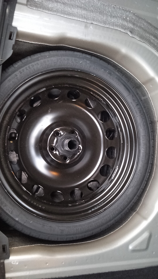 Roue de secours à encombrement réduit, outillage de bord et cric (vitesse limitée à 80 km/h)