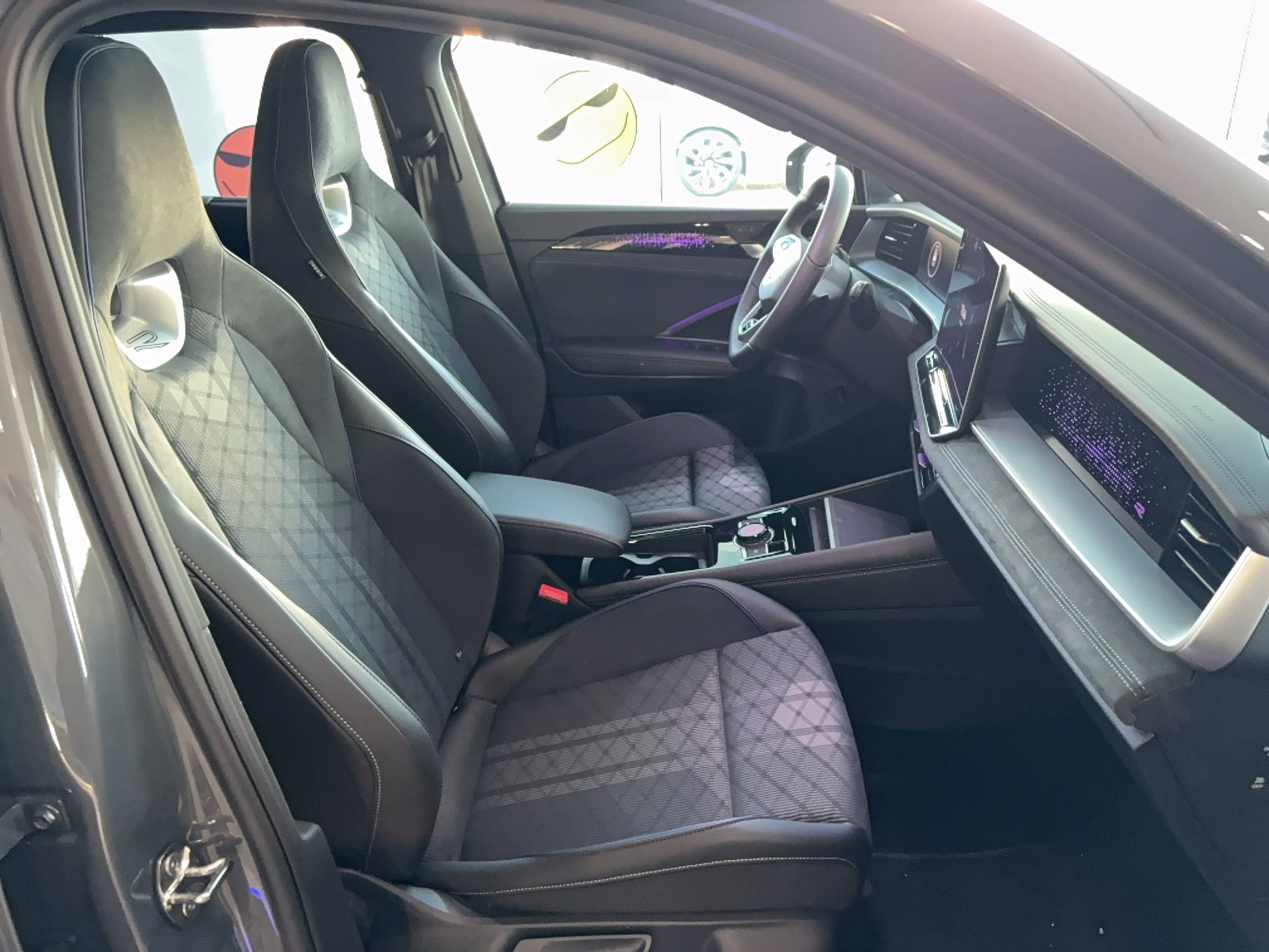 Drive Experience Control: Sélecteur de profil de conduite avec écran OLED tactile Permet d'ajuster le volume, le profil de conduite ainsi que les, «Atmosphères», Appuyer sur le sélecteur pour afficher les profils de conduite, passez votre doigt sur l'écran tactile pour basculer sur le choix des Atmosphères', Des Atmosphères' sont déja paramétrées dans le véhicule mais vous pouvez créer vos propres atmosphères en définissant une playlist, un affichage Digital Cockpit, un éclairage d'ambiance, un niveau sonore et une tonalité