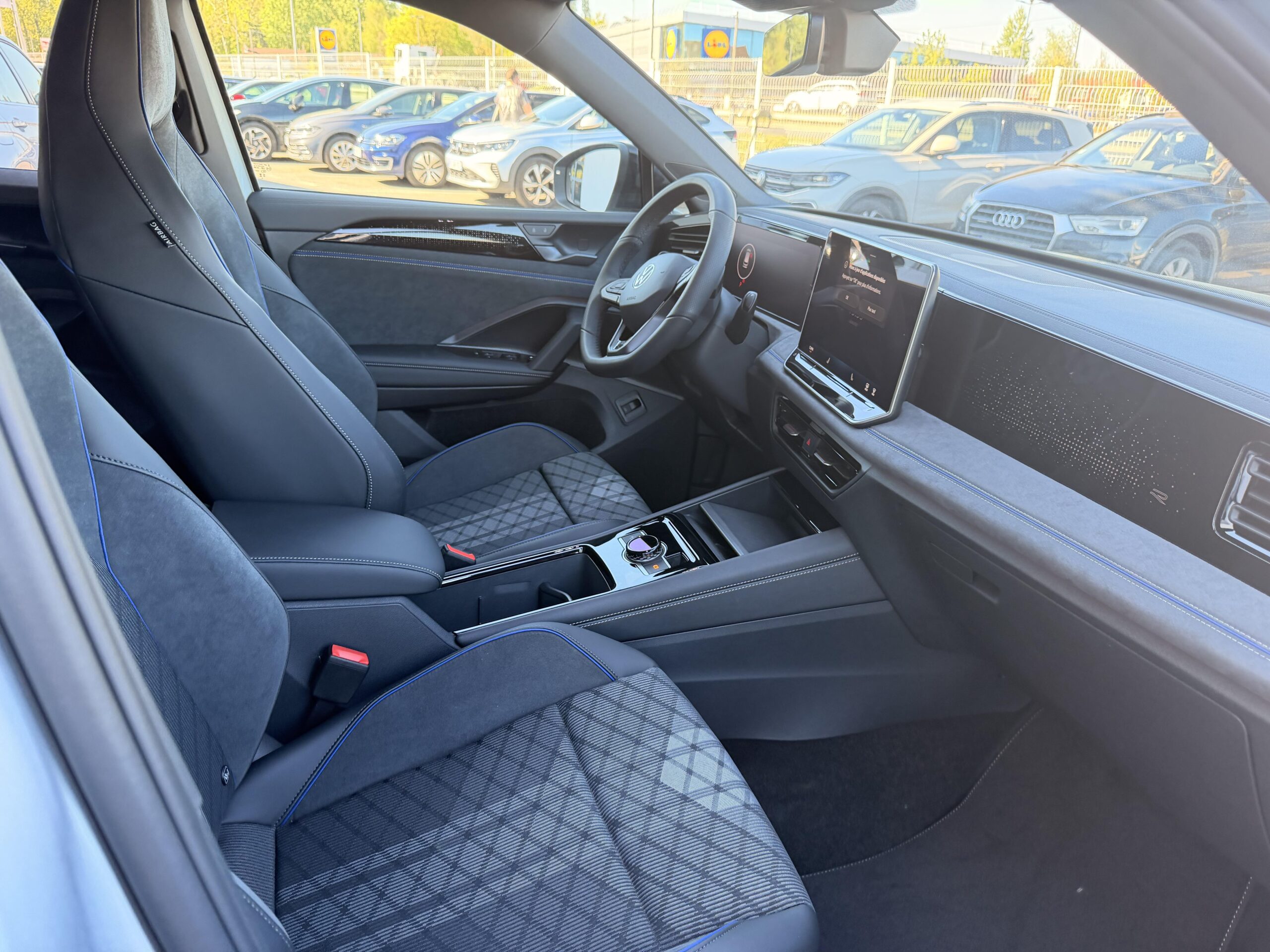 Drive Experience Control: Sélecteur de profil de conduite avec écran OLED tactile - Permet d'ajuster le volume, le profil de conduite ainsi que les "Atmosphères" - Appuyer sur le sélecteur pour afficher les profils de conduite, passez votre doigt sur l'écran tactile pour basculer sur le choix des "Atmosphères" - Des "Atmosphères" sont déja paramétrées dans le véhicule mais vous pouvez créer vos propres atmosphères en définissant une playlist, un affichage Digital Cockpit, un éclairage d'ambiance, un niveau sonore et une tonalité