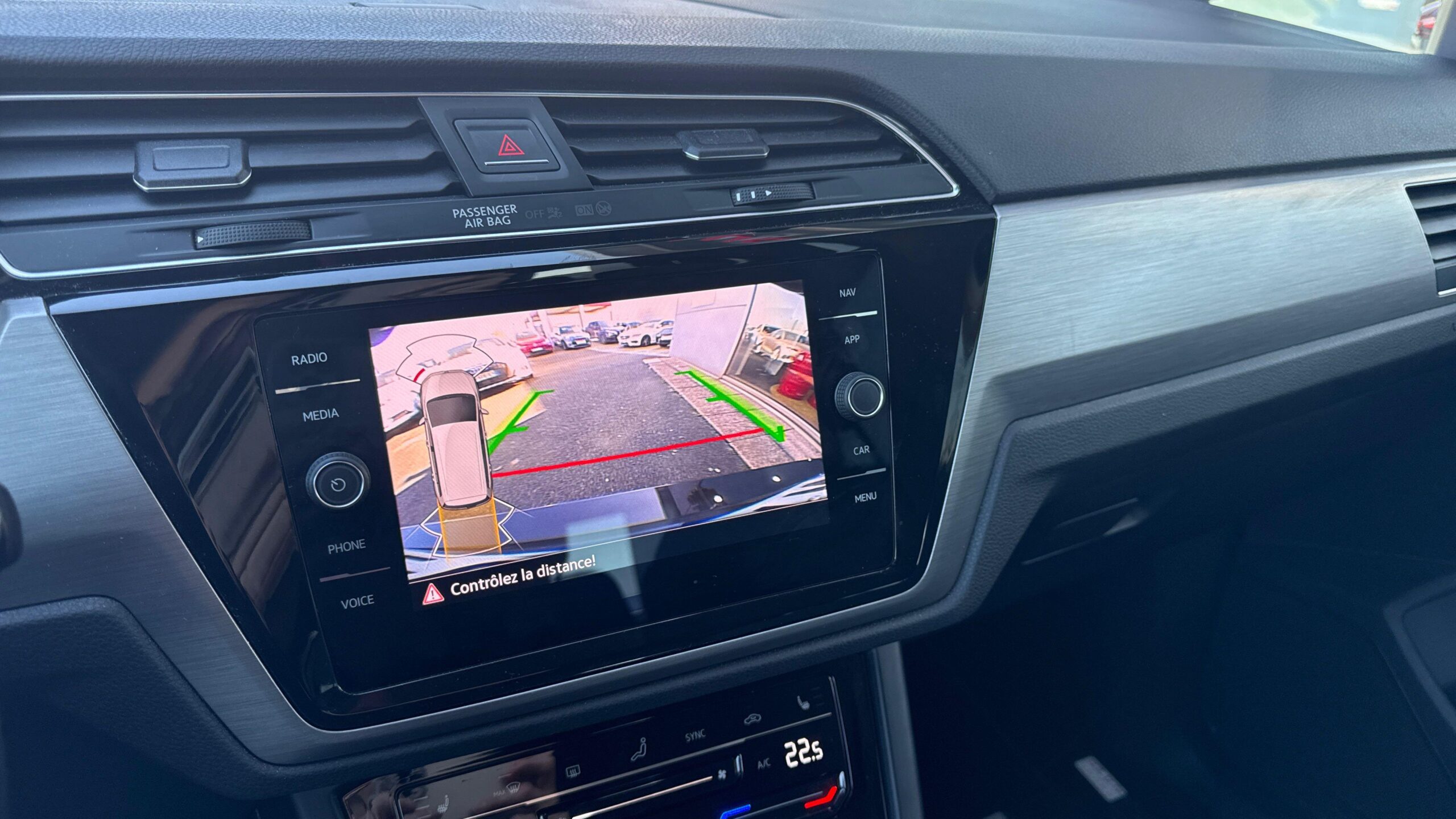 Aide au stationnement AV/AR avec signaux sonores et visualisation de la distance des obstacles sur l'écran