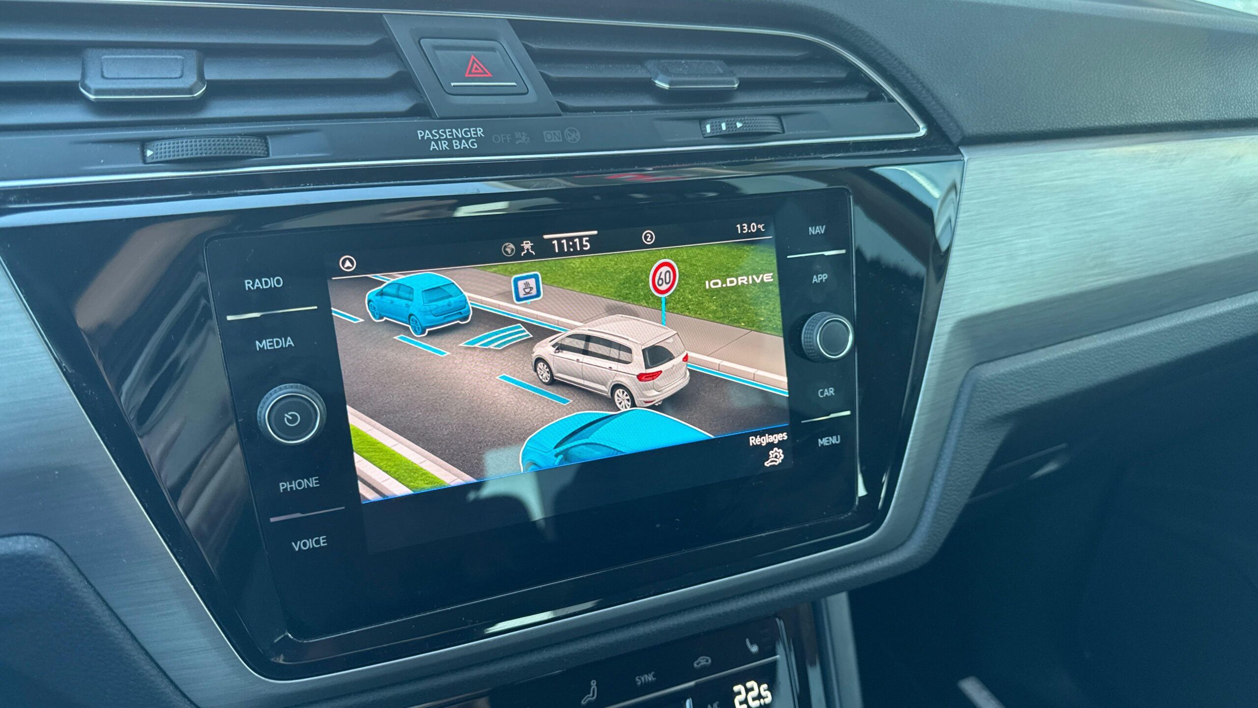 Travel Assist: assistant de conduite qui combine le régulateur de distance ‘ACC’, l’assistant de maintien dans la voie ‘Lane Assist’, l’assistant au changement de voie ‘Side Assist’ et l’’Emergency Assist’ (uniquement DSG).